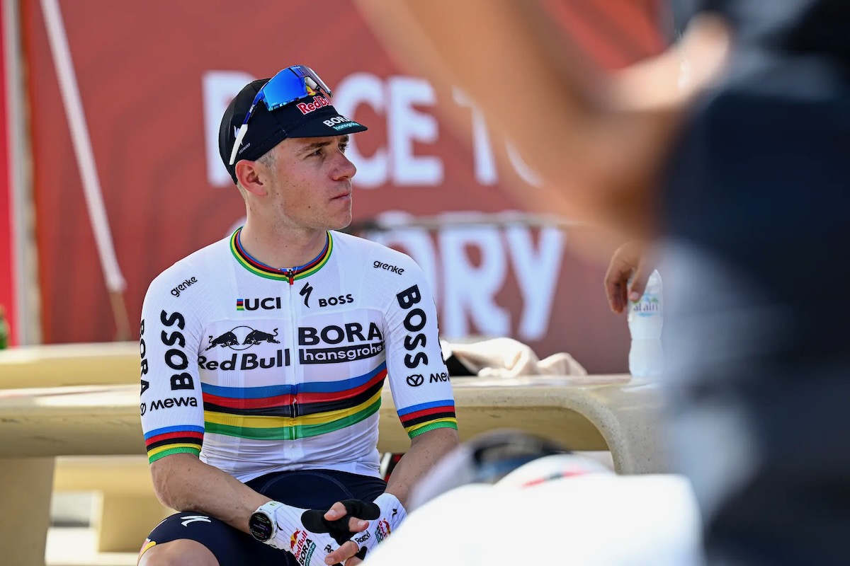 2時間にわたりホットシートに座り続けたレムコ・エヴェネプール(ベルギー、レッドブル・ボーラ・ハンスグローエ) photo:UAE Tour