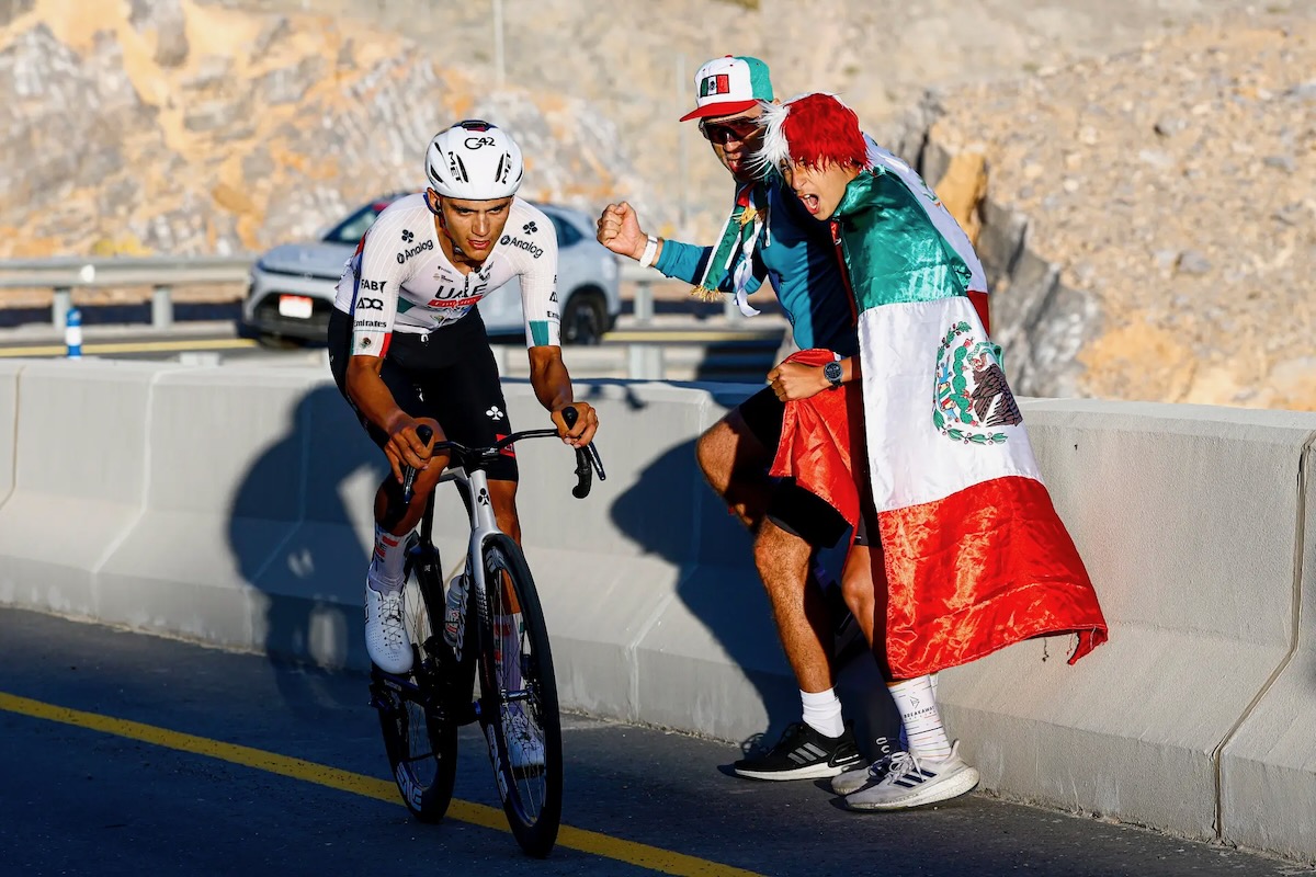 追走するイサーク・デルトロ(メキシコ、UAEチームエミレーツXRG) photo:UAE Tour