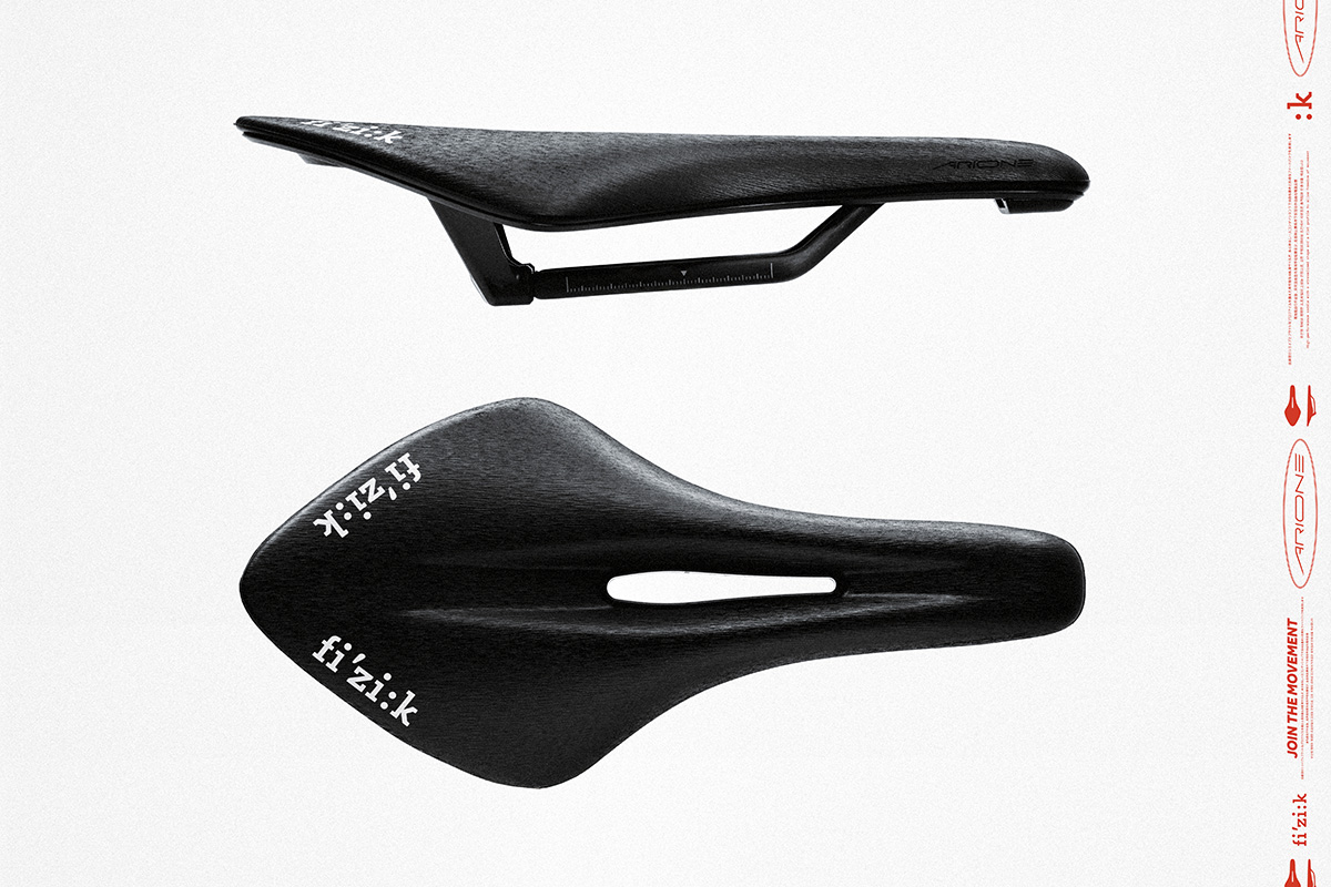 ライダーの柔軟性や乗車姿勢に基づいたサドル選びを提唱するフィジーク。その設計思想を反映させたモデルの中でも象徴的な存在がArioneだ。細長い流線型のシルエットとフラットなプロファイルを採用し、エアロダイナミックな深い前傾姿勢に適したサドルとして、プロ選手から選ばれてきた存在として知られている。
