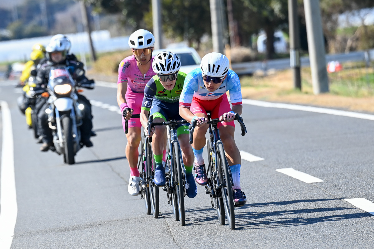 その後アタック合戦が繰り返されたのち、8周目に入ると3名の集団が先行する。メンバーは、山本、佐藤宇志(チームサイクラーズスネル)、能登滉太(備後しまなみeNShare)。