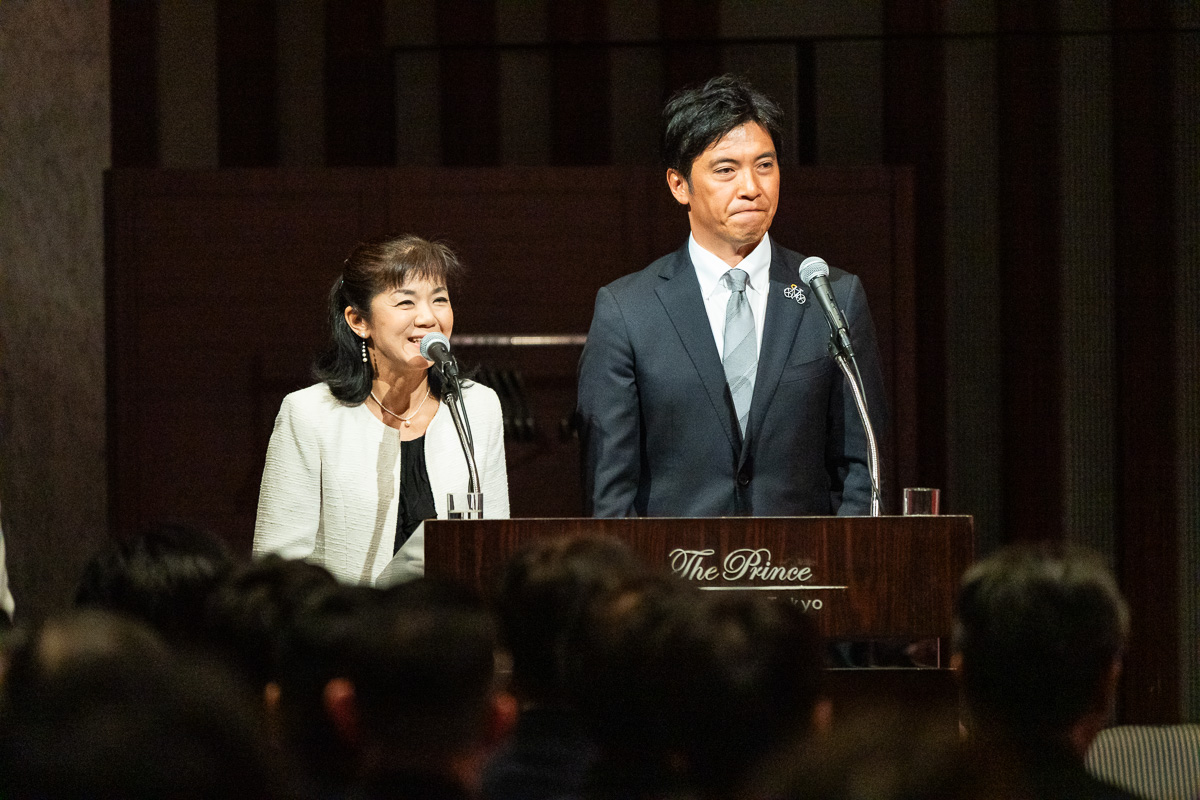 式典の司会進行役を務めた板垣龍佑さん、さとうゆみさん photo: Yuichiro Hosoda