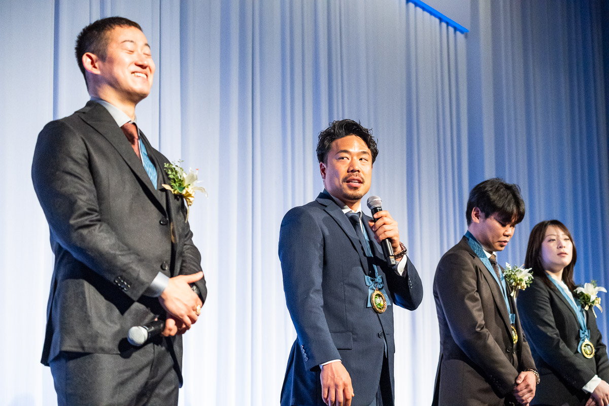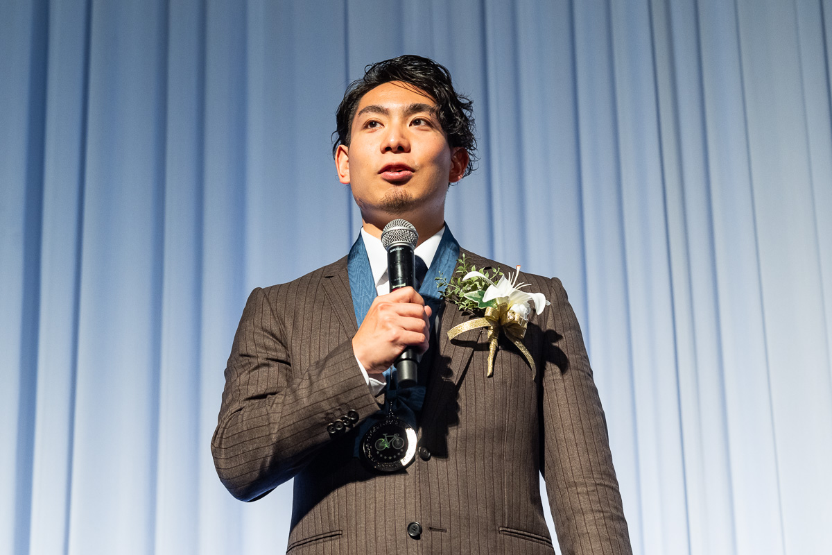 式典は、来賓の経済産業省審議官・田中一成氏による祝辞にて閉会。食事とともに選手達のトークを楽しむ祝賀会へと場を移した。今回受賞した全選手は以下の通り。