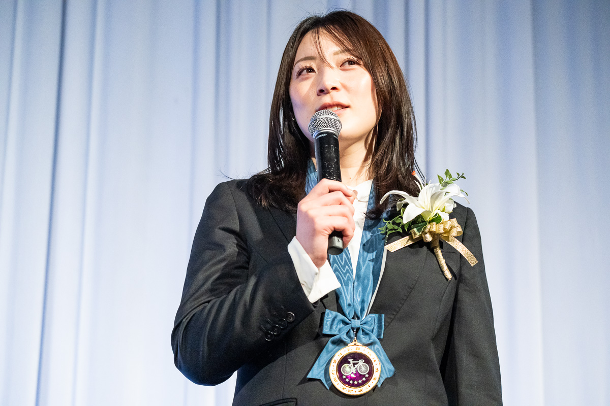 ガールズ部門の最優秀選手賞を獲得した佐藤水菜は、この他に国際賞、グランドスラム賞、グランプリスラム賞、GI優勝記録更新選手賞も受賞。4つのガールズGIとガールズグランプリを1年で全て制覇し、世界選手権でも女子ケイリン連覇を達成するなど他を圧倒的する活躍を見せ、「ガールズケイリンももちろんですが、日本ナショナルチームとしても世界一を目指して、もっと強いチームを作っていきたい」と抱負を語った。