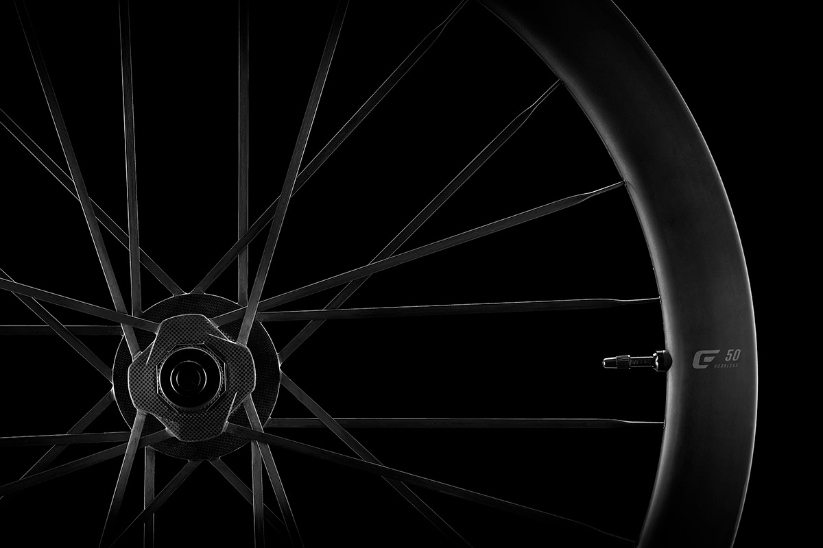 エアロ、剛性を高めるための設計と同時に、カーボンレイアップを徹底的に突き詰め、エッチングやデカールを廃するテクノロジーを採用することで前後セット1250g(フロント575g、リア675g)を実現している。MAX 40の1249g(40mmハイト)とほぼ同等。駆動剛性重量比はUltra 50と比較し、リアホイールにおいては17.7%も向上しており、スプリントや急な加速局面、山岳レースでアドバンテージとなるはずだ。