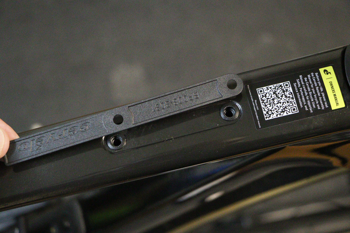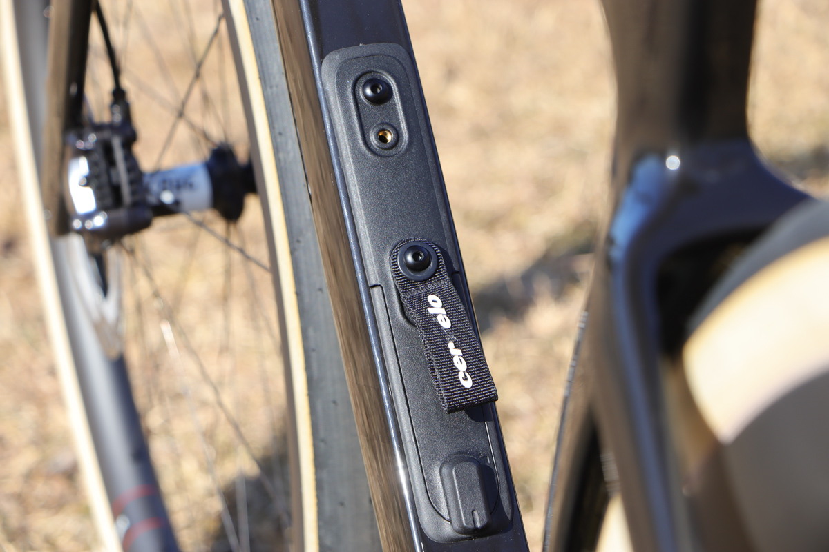 細部を見ていこう。ダウンチューブには内蔵ストレージを備える。レースバイクのなかにはこれを省くブランドもあるが、はやりフレーム内にリペアキットやスペアチューブなどを収容できたほうが外付けバッグの容量を減らせるため便利で、エアロ的にも有利になる。