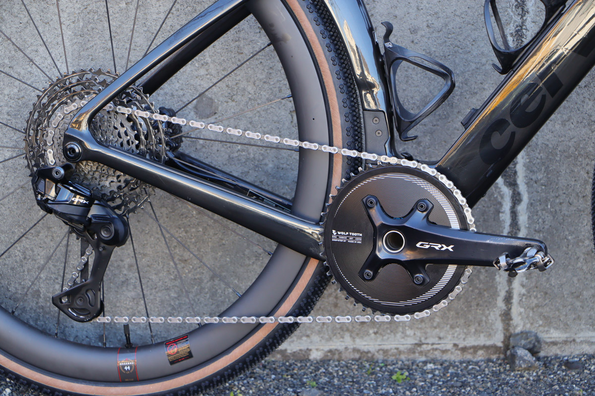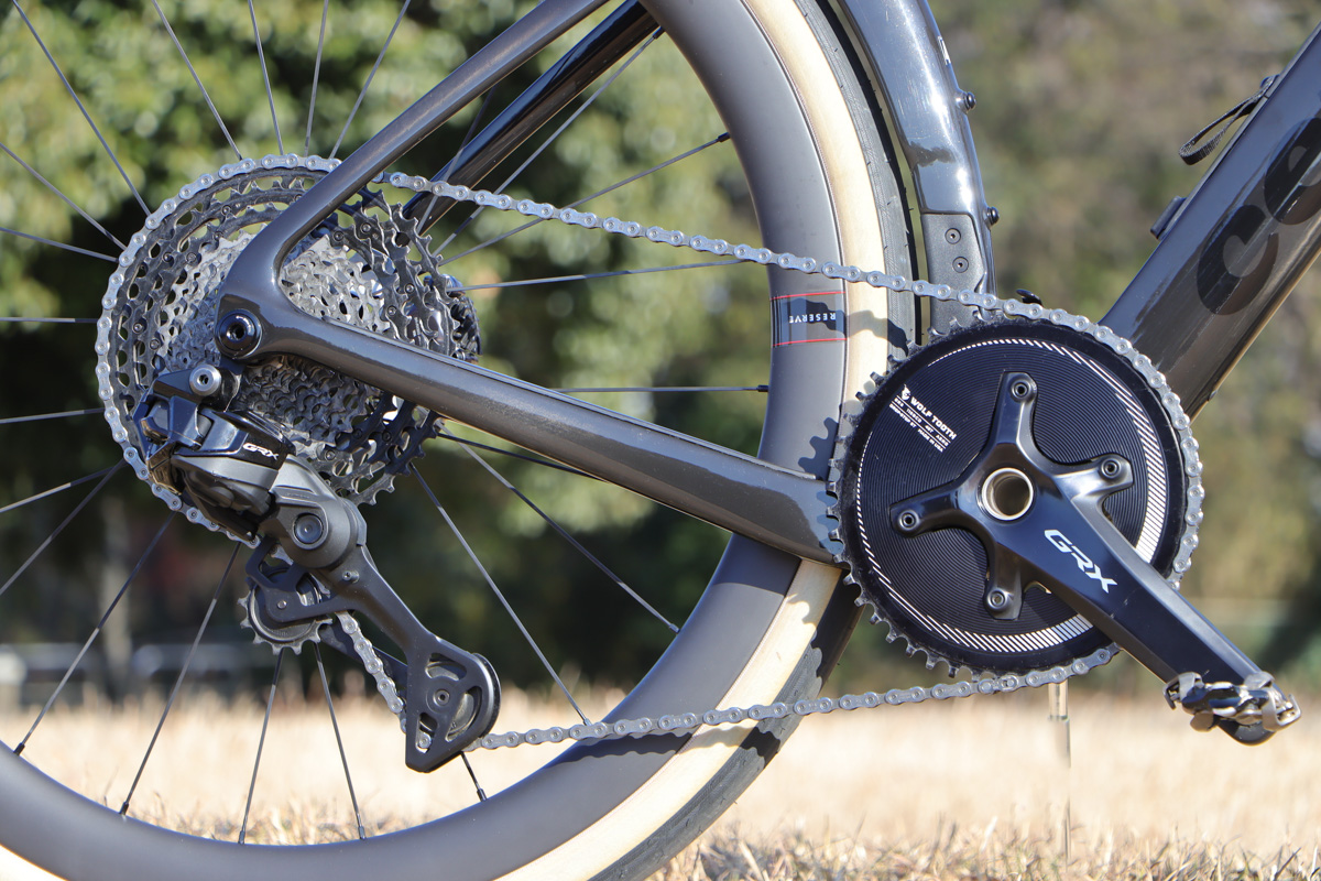 GRX RX825 RDにXTRスプロケット、GRXクランクにウルフトゥースのエアロ形状48Tシングルギアがセット photo:Makoto AYANO