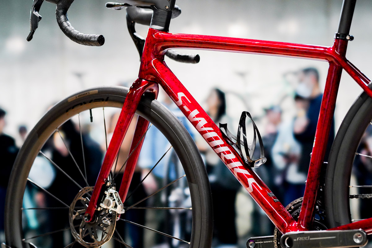 S-Works Aethos 2のRed Tintカラーは公式WEBでも深みのある色合いだとわかるが、実物の印象はひと味違う。デザイン面で気になることがあれば、気軽に足を運んでみるといいだろう。