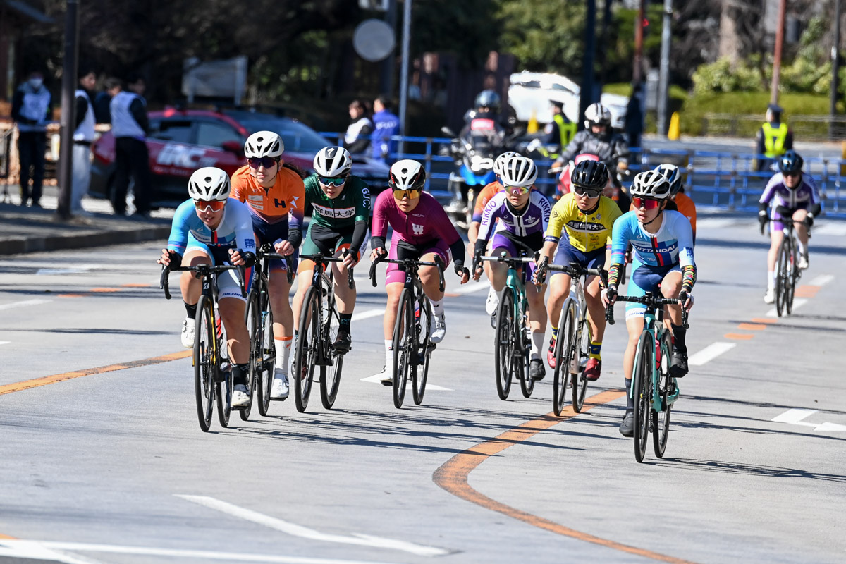 女子は9周12.6kmのレースに10名が出走。序盤からトラック中距離ナショナルチームの水谷彩奈(日本体育大学)と岡本美咲(早稲田大学)がペースを上げ、伊藤日菜子(日本体育大学)、今西紗楽(鹿屋体育大学)らが追従して4名に絞られる。最後は4名で横一線のスプリントとなり、僅差の勝負を今西が制して優勝した。