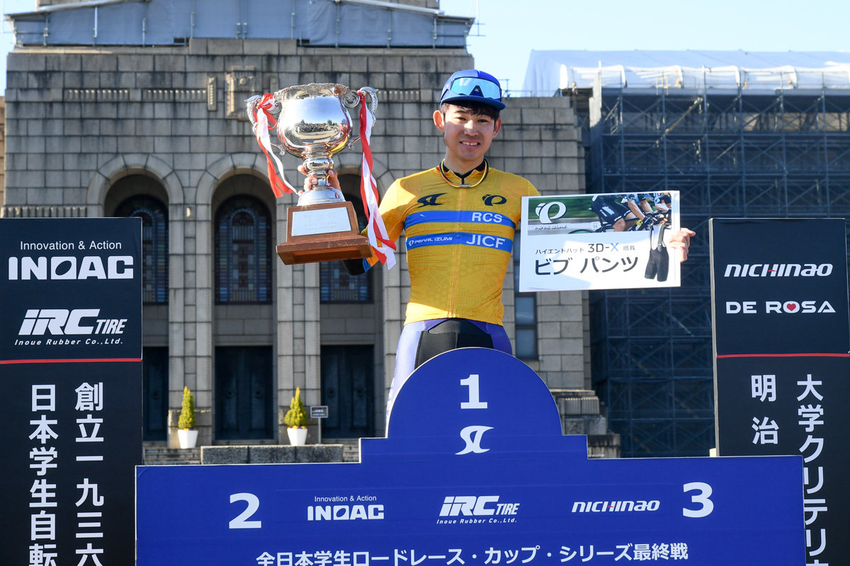 「第1戦のオープンロードで優勝してリーダージャージを着て、ここまでうまくポイントを稼いで圧倒的な差をつけて首位をキープすることが出来た。シーズン最終戦まで走り切るつもりでやってきて、今日は4位で表彰台には乗れなかったけれど、このレースを走れることに感謝したい。僕以外のチームメイトも今年は活躍出来たと思うし、最後のレースで大学対抗2位となって成長を実感出来たと思う。2026年度はインカレ、学生選手権のロード、トラックなどで優勝を目指して全国制覇できるチームになれるよう頑張りたい」