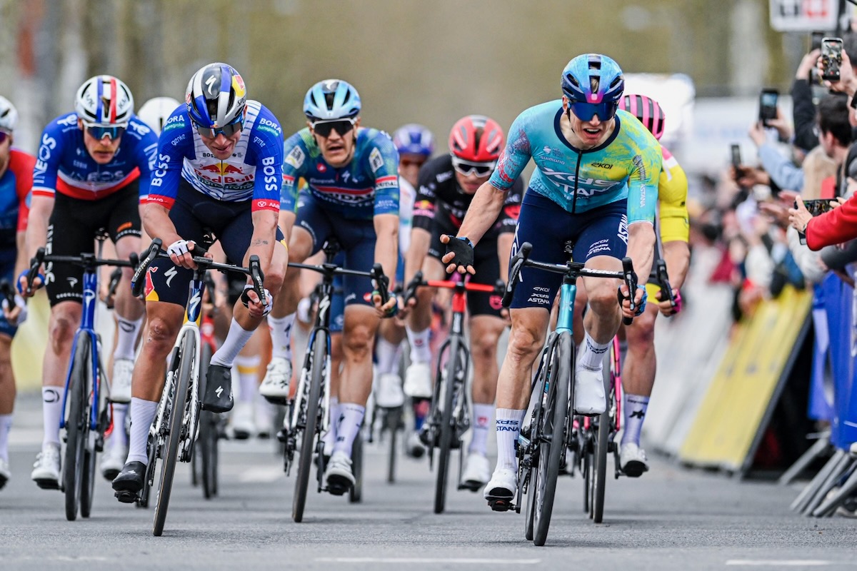 コース幅が一時的に狭まる最後のラウンドアバウトで集団が縦長に伸び、プロトンは分断された。スーダル・クイックステップからチューダープロサイクリングへと先頭が入れ替わり、マイク・トゥーニッセン(オランダ、XDSアスタナ)のリードアウトからマックス・カンター(ドイツ)がスプリントを開始。これ以上ない絶好の位置とタイミングで踏み始めたカンターには、ローレンス・ピシー(ニュージーランド、レッドブル・ボーラ・ハンスグローエ)ら後続は敵わなかった。