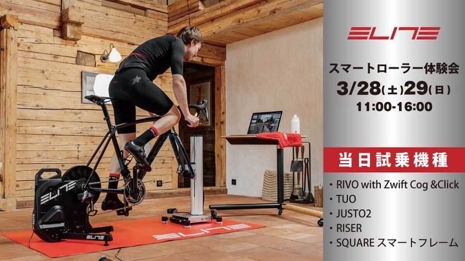 3月28日に開催される、PINARELLO GALLERY OPENイベントにカワシマサイクルサプライさんご協力の元、ELITEスマートローラーの体験会を行います。