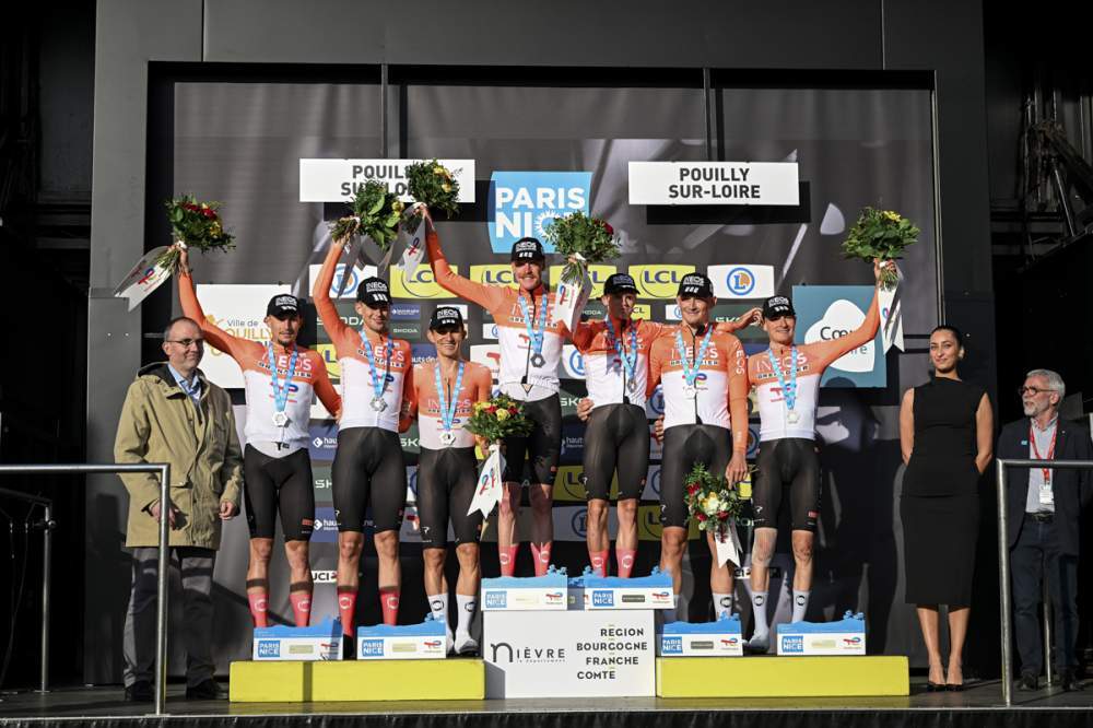 しかし、イネオス・グレナディアーズは更にその上を行った。中間計測で13秒差をつけたイネオス・グレナディアーズは、そのマージンを削りつつもオスカー・オンリー(イギリス)を従えたケヴィン・ヴォークラン(フランス)を先頭にフィニッシュ。リドル・トレックを2秒上回る26分40秒でステージ優勝を決めた。