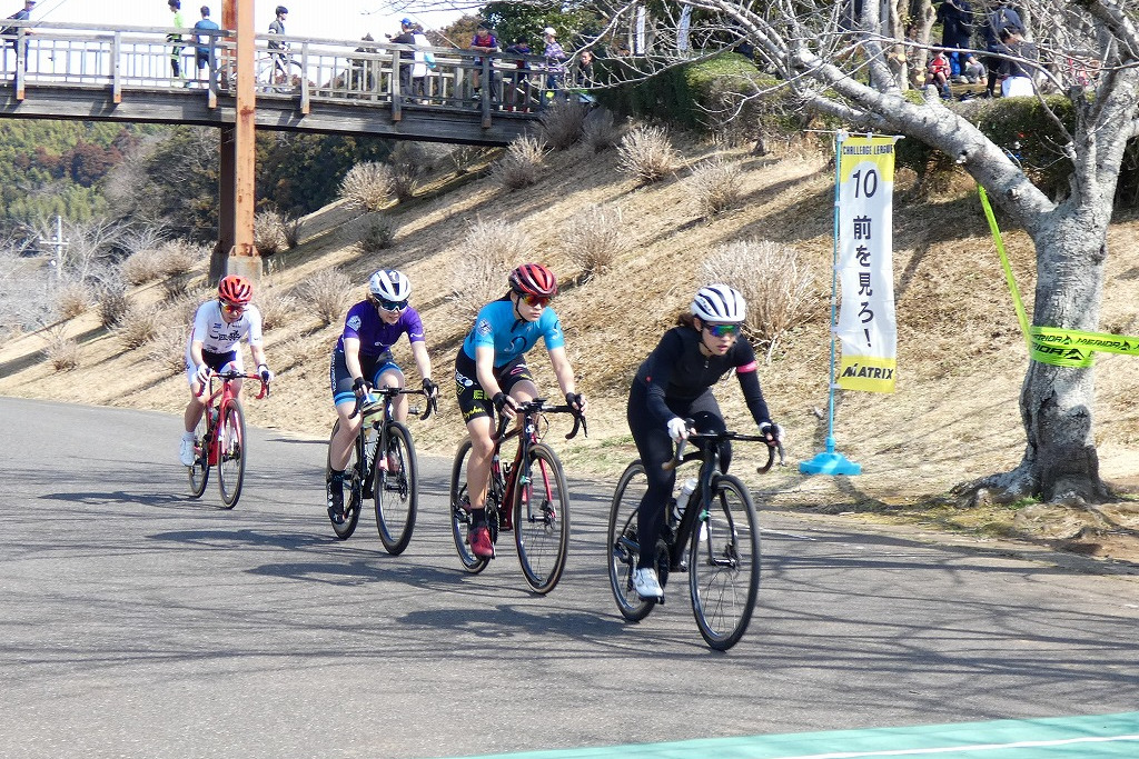 最初のレディースレース集団形成。先頭から下平、岡田、岡本、根本の4名 photo:QNリーグ事務局