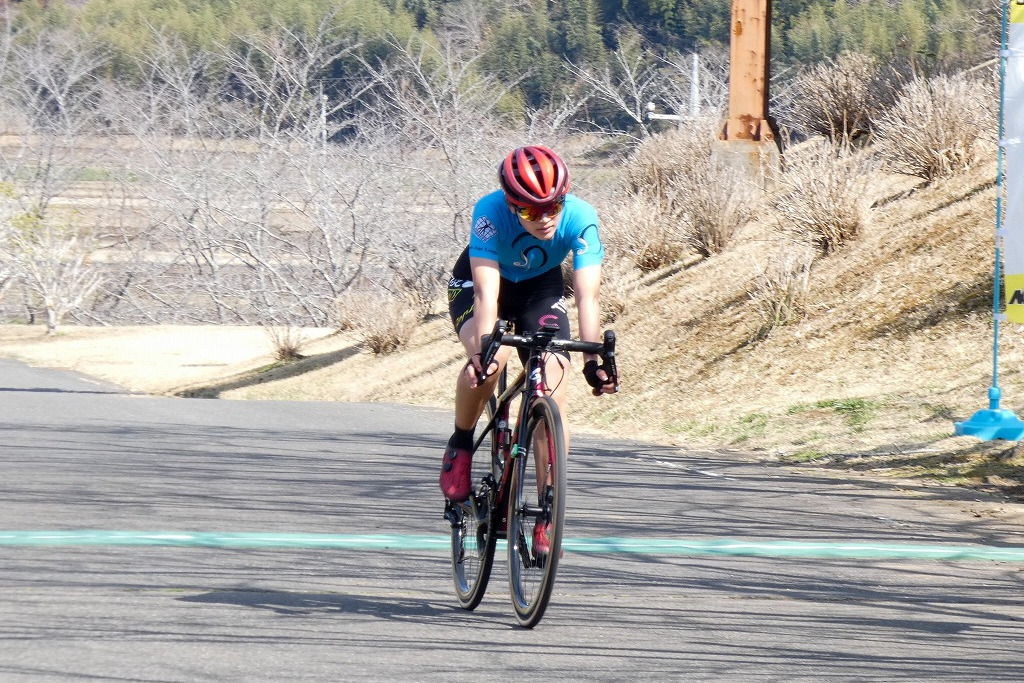 た瞬間のスピードはあるものの、持続力が足りていないことが一因と思われる。飛び出し後は後ろのメンバーを伺うのではなく、先ずは1周か2周回を踏み続けてみて後方集団とのタイムギャップが出来てから、はじめて追いかけてくるメンバーを見て「逃げるか?止めるか?」を決める姿勢が大事。特に今レースのように距離の短い場合は臨機応変に考えている時間がないため、ここぞ!というときに思いきった動きをして最後まで諦めないことが肝要だ。なによりも何度も積極的な走りで自信をつけることが重要である。