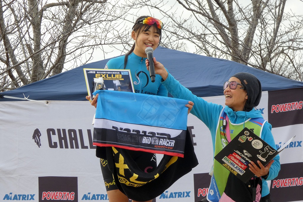 今大会の年間総合ポイントリーダー授与式では、Bioracer様より「アメジストジャージ」「バトルマリンジャージ」各リーダージャージのご提供とともに、QリーグとNリーグ中学生女子 NW には特別賞をご提供いただきました。また、Qリーグは株式会社 隼様より「アスリチューンQリーグポイントリーダー賞」、Nリーグ中学生女子NWはアイリス株式会社様より「EXLUB Nリーグ中学生女子NWポイントリーダー賞」として、それぞれ年間総合の特別賞品をご提供いただきました。Nリーグ中学生男子Nは武田レッグウェアー株式会社様より「RxL Nリーグ中学生男子 N ポイントリーダー賞」のほか、ポイントランキング上位3名に特別賞をご提供いただきました。また最終戦において株式会社ジゴスペック様より各リーグ年間総合ポイントリーダーへ Airflyより、お好きなサングラスを1本ご提供いただきました。今シーズンも1年間、豪華副賞をご提供いただきリーグ選手達の高いモチベーションと目標に繋がりました。厚く御礼申し上げます。