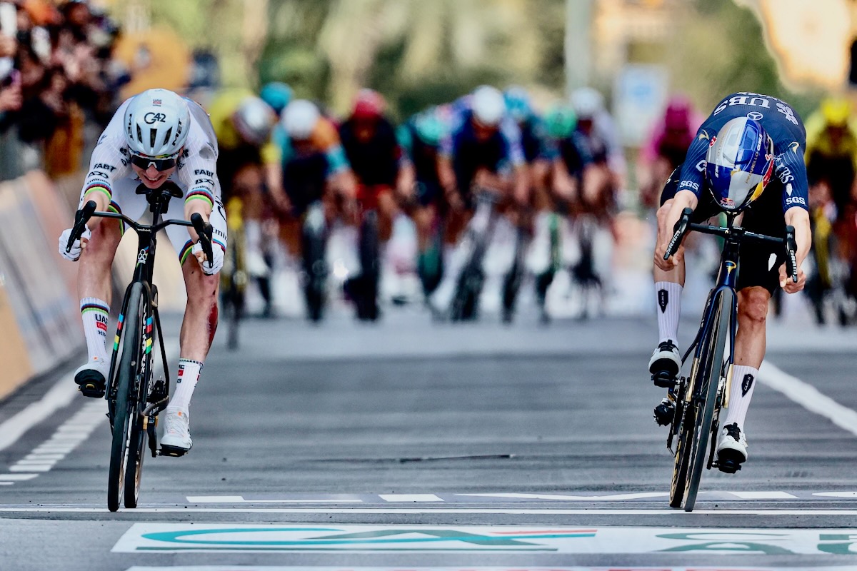 先頭2名はローテーションを回しながら下りきり、ファンデルプールを吸収した追走集団からはファンアールトが飛び出したものの、優勝争いに加わることはできない。そしてどちらが勝っても初優勝となる2名は、ポガチャルを先頭に大観衆の待つ最終ストレートに突入。ポガチャルは何度も後ろを振り返り、ピドコックの様子をうかがう。
