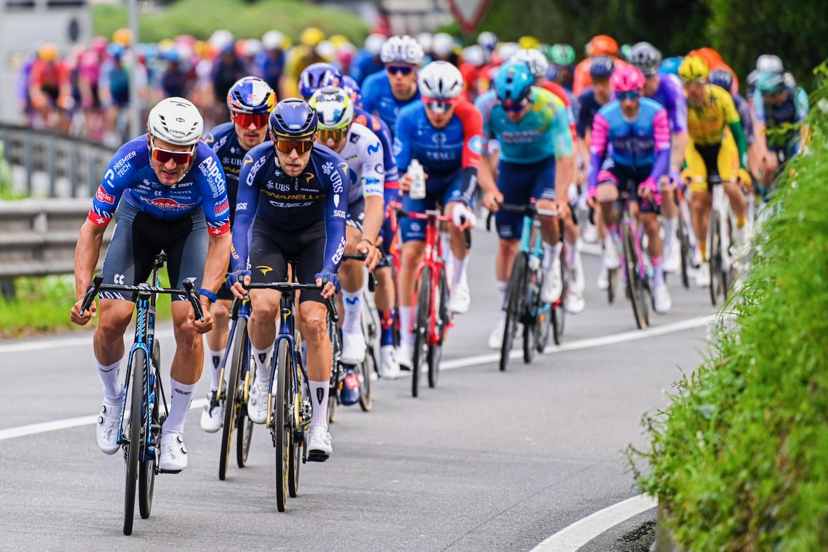 残り27.35kmから始まるチプレッサ(距離5.65km/平均4.1%/最大9%)でプロトンは逃げ集団を引き戻す。昨年はここで1度目のアタックを見せたポガチャルは、集団後方で登り始め、ブランドン・マクナルティ(アメリカ)の高速牽引により、僅か1kmでUAEが先頭に立つ。そして頂上まで残り3km地点で先頭はイサーク・デルトロ(メキシコ)に代わり、出遅れた展開を取り戻すようにハイスピードに持ち込んだ。