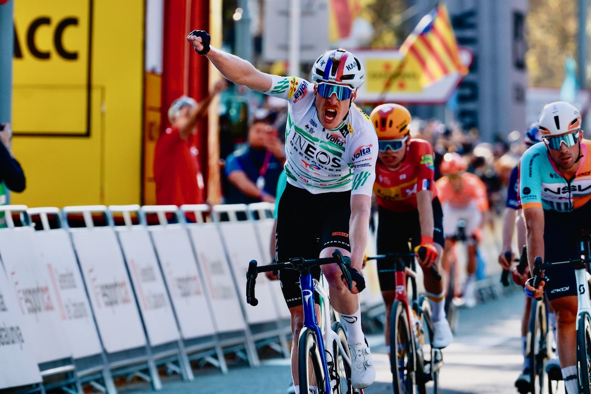 横風分断で飛び出したエヴェネプールが落車し、ともに先頭に立っていたヴィンゲゴーが脚を止めたボルタ・ア・カタルーニャ3日目。集団スプリントをドリアン・ゴドン(フランス、イネオス・グレナディアーズ)が制し、今大会2勝目を挙げた。