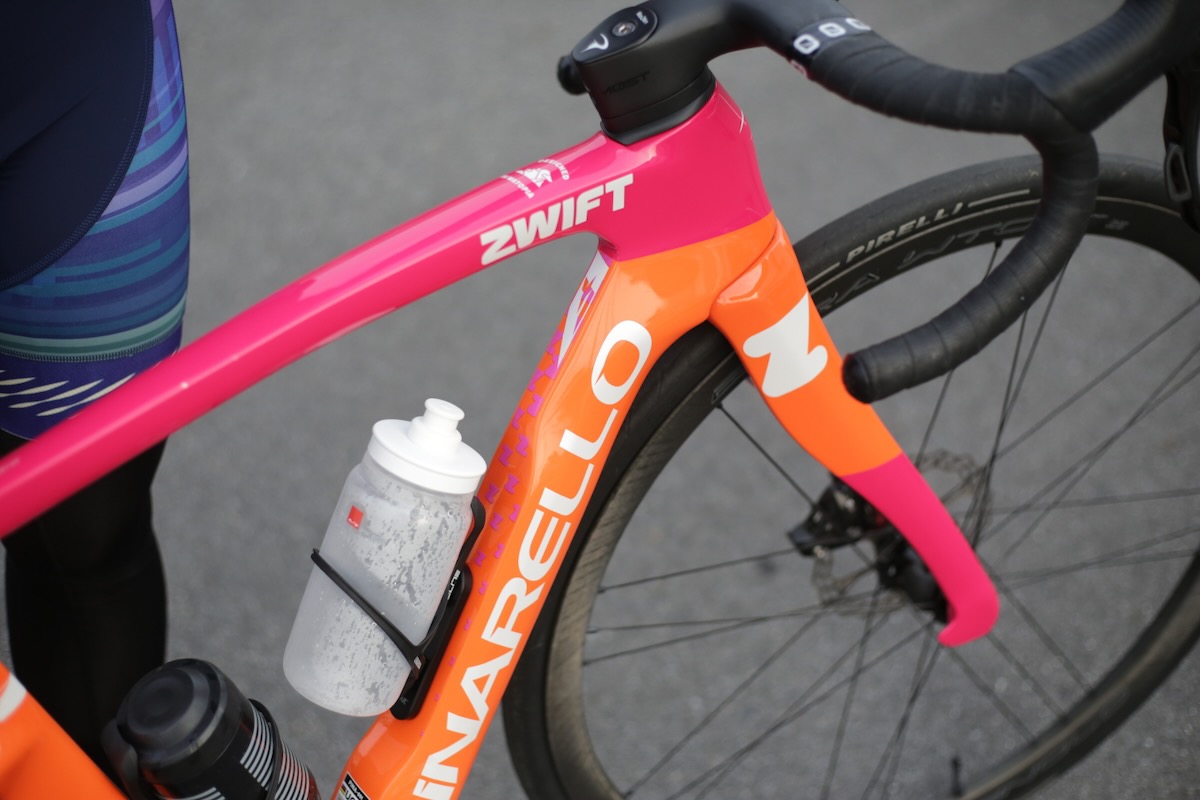 Yumi yummy channelでお馴染みの「ゆみやみ」さんは、ZWIFT限定カラーのDOGMA Fオーナー。「ZWIFTでコミュニティを運営しているので、このカラーが発表された時にすぐ"これ欲しいです!"って言ったんです。日本で発売されるかどうか分からなかったんですが、なんとかピナレロジャパンさんに輸入してもらいました。インプレはよく分かりませんが、平坦の伸びが凄く気に入ってます」とのこと。