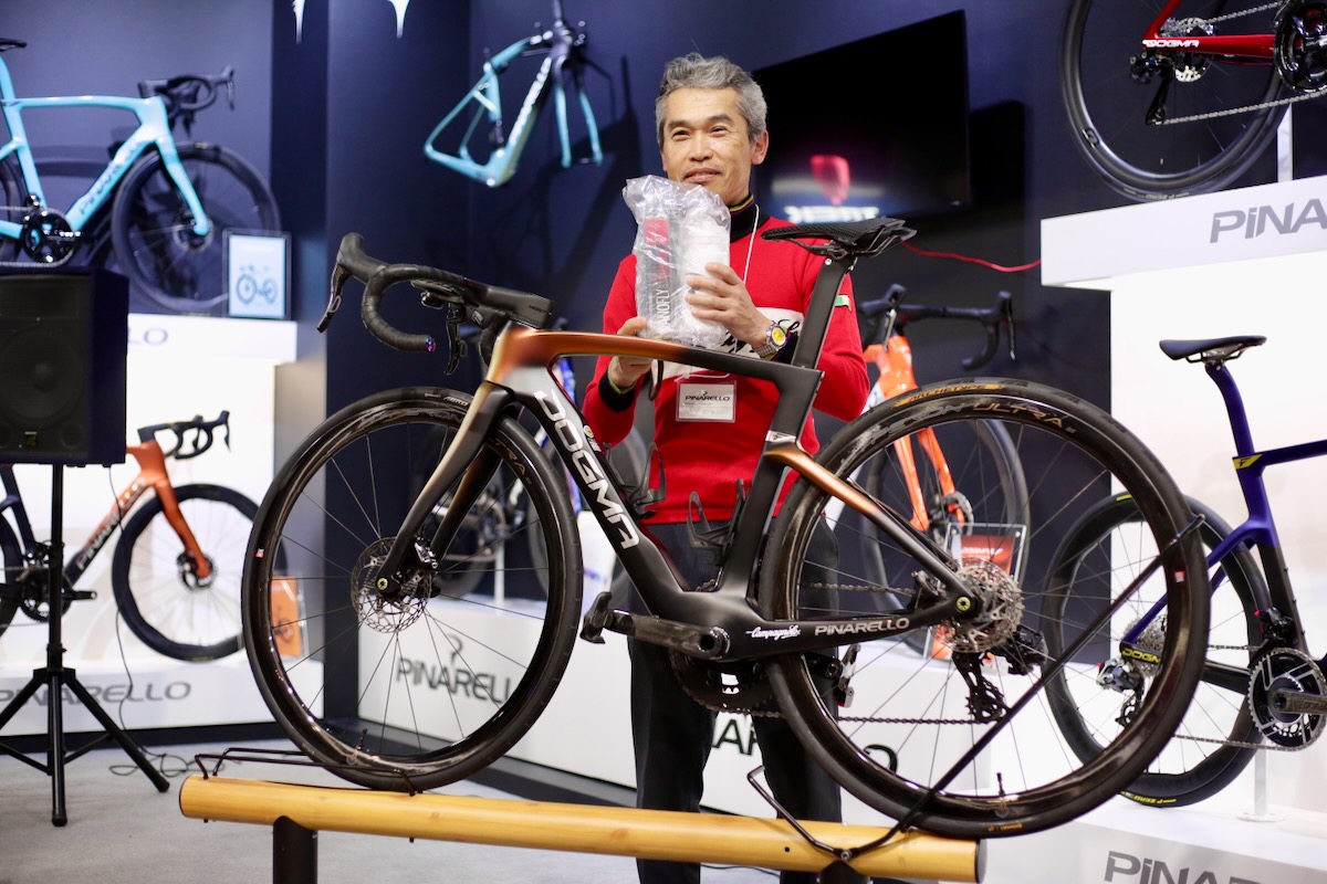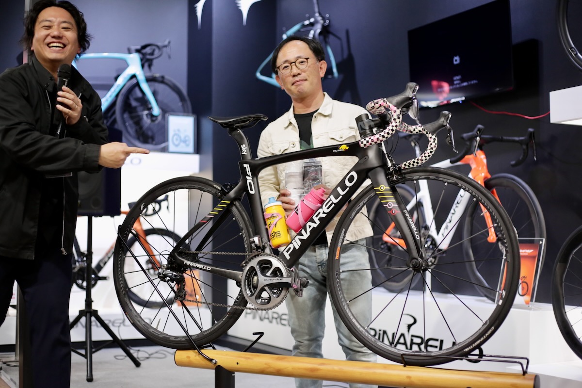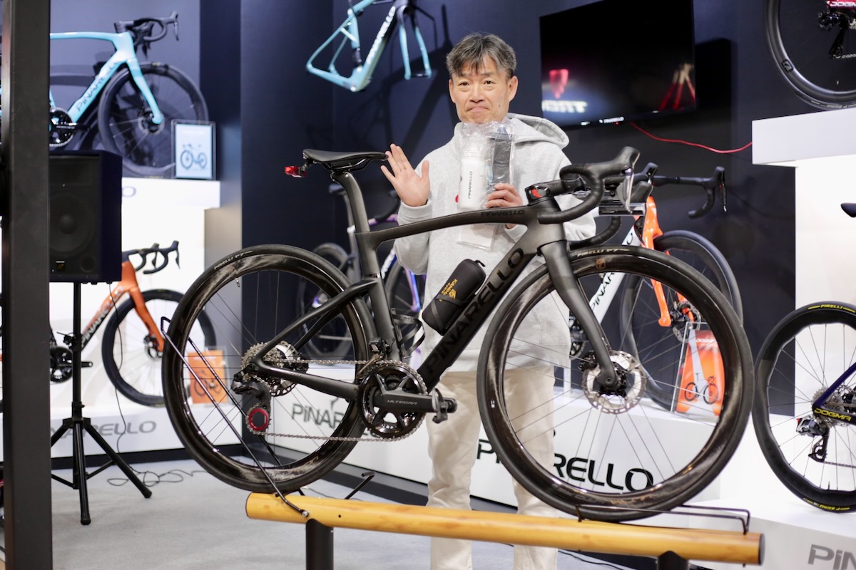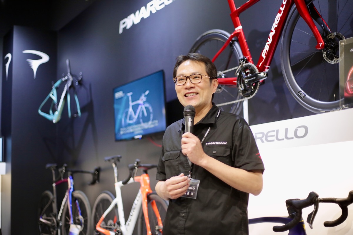 ※私ことCWスタッフの磯部もトークショーにお呼ばれして、ほぼ毎年参加させてもらっているピナレロのグローバル発表会で得た知見から、上萩代表やカワシマサイクルサプライ代表の川島昌洋さん、そして先輩ライターの浅野真則さんと一緒にピナレロについてお話しさせてもらいました。ありがとうございます。