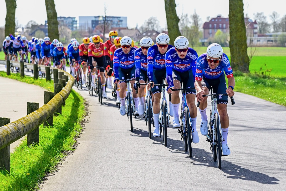 2連覇中のマッズ・ピーダスン(デンマーク、リドル・トレック)は体調不良のため欠場。その結果、優勝候補にはアルペシン・プレミアテックのマチュー・ファンデルプール(オランダ)とヤスペル・フィリプセン(ベルギー)、そしてミラノ〜サンレモで3位だったワウト・ファンアールト(ベルギー、ヴィスマ・リースアバイク)が挙がった。最初の1時間の平均時速が51kmを超えるハイペースで進んだレースは、好調ユニベット・ローズ・ロケッツのウェッセル・モーリス(オランダ)を含む8名が逃げた。