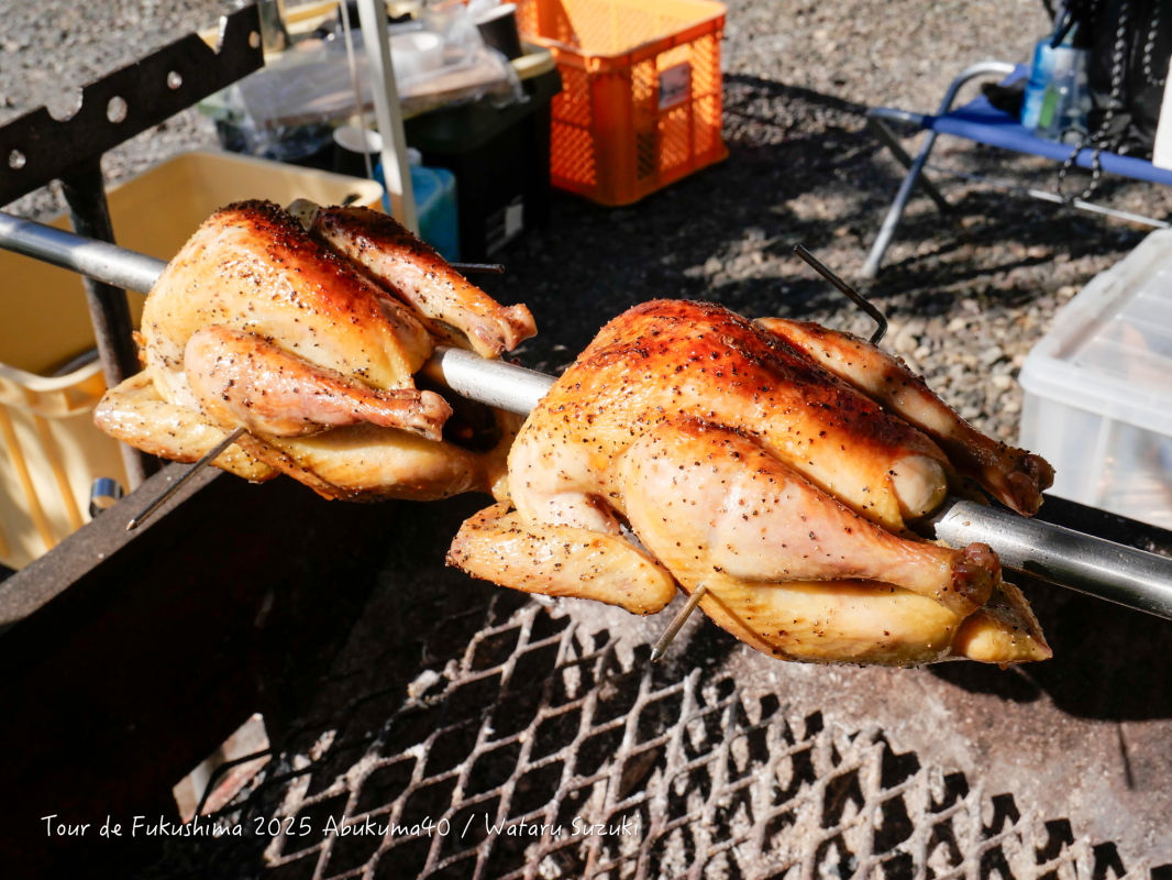 川俣町の地鶏であるシャモの丸焼き (c)ツール・ド・ふくしま実行委員会