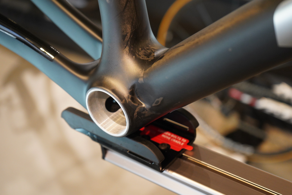 岡部氏が「上りがあれば必ず下りがある」と表現した通り、軽くするためにフォークブレードを必要以上に細くして剛性を落とすという手法は取らず、走りの質を損なわない範囲で1グラムを削るという姿勢が貫かれている。フレーム重量はSサイズでカタログ値830g、フロントフォークが360g。