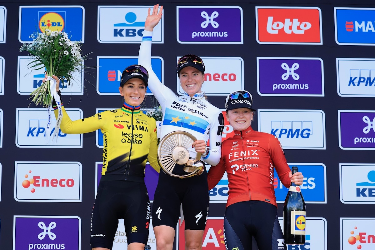 最後のオウデ・クワレモントで驚異的な登坂スピードを披露したデミ・フォレリング(オランダ、FDJユナイテッド・スエズ)。ヨーロッパ王者が6度目の出場で、念願の勝利を手に入れた。
