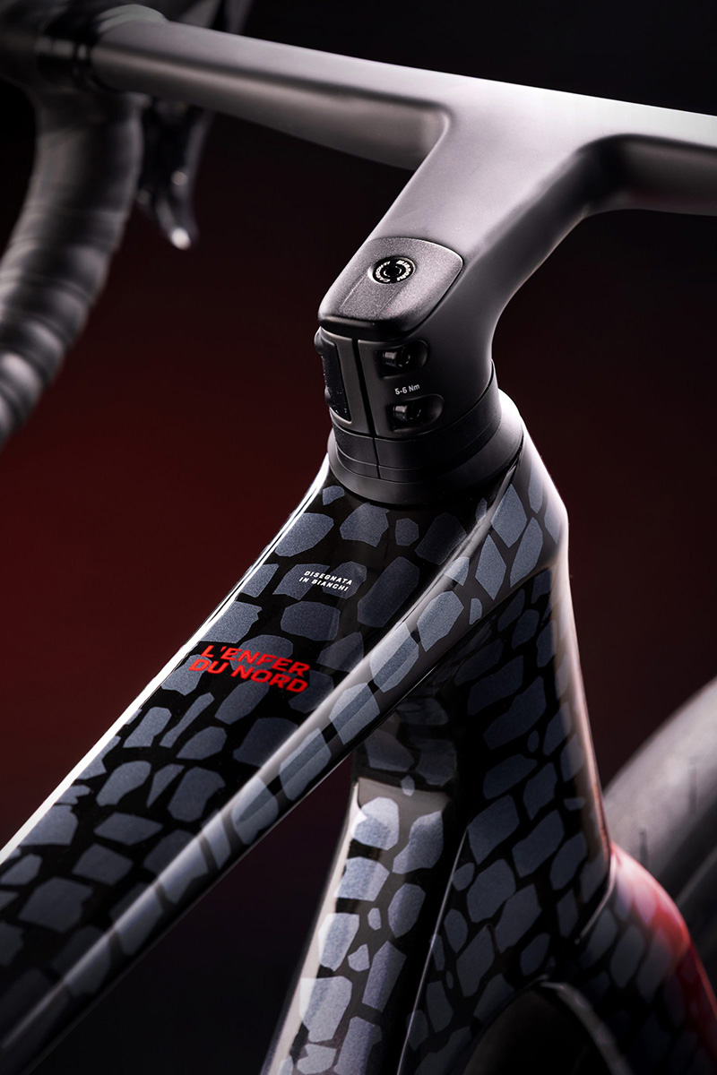 きたるパリ〜ルーベに向けて大会オフィシャルパートナーを務めるビアンキが特別仕様のINFINITOを発表。パリ〜ルーベをイメージさせるペイントを施し、約55kmの石畳区間にちなみ生産台数はわずか55台というスペシャルモデルだ。