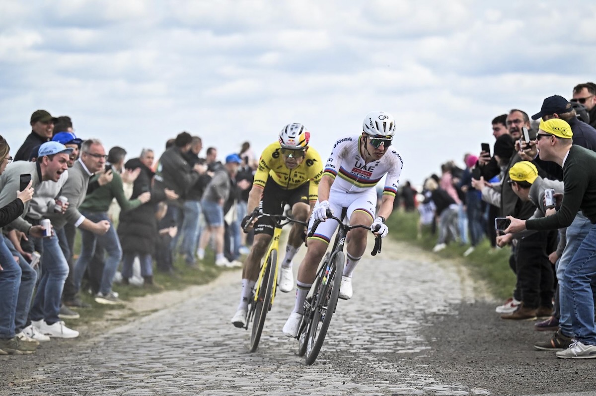 そして続く「No.12 オシー・レ・オルシ-ベルセ」の直前からレースは大きく動いた。ファンアールトが加速し、単独先頭で石畳区間に入ると、ハイペースについていけたのはポガチャルとピーダスンの2名のみ。そこからポガチャルが前に出るとピーダスンが遅れ、残り53km地点で先頭は2名に絞られた。