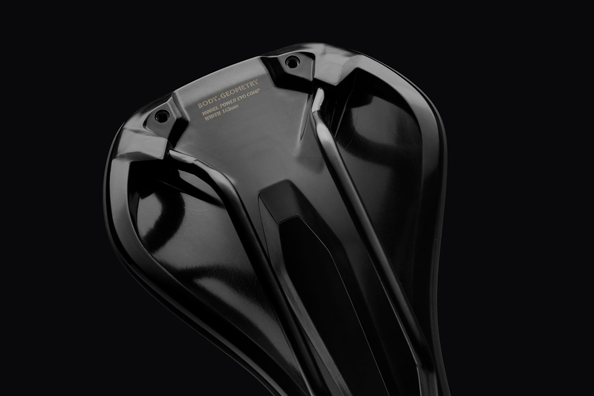Power EVOシリーズの最大の特徴は、ノーズ形状の見直しとレールの延長にある。ノーズ部分の幅が従来のPowerサドルよりも広げられたことで、深い前傾ポジションでの圧迫が軽減され、ヒルクライムやTT的な前乗りポジションで長時間ハイパワーを出力する場面でも、快適性が保たれるように設計されている。