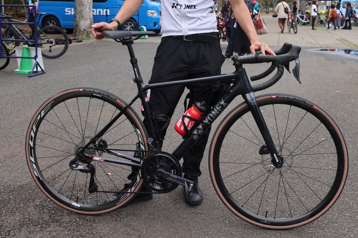 ホイールはジャイアント SLR 0 40と同ブランドで統一。完成車ベースのため、Jプロツアーのレースで十分戦える完成度の高さを感じる。