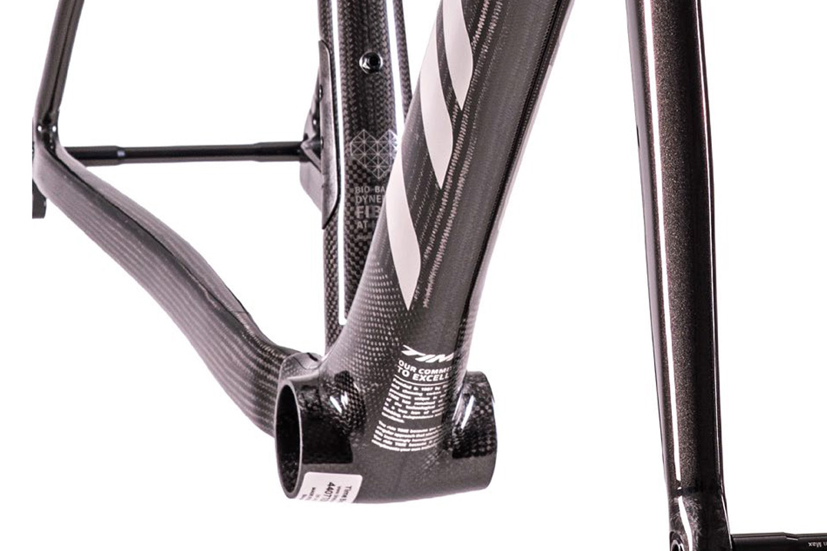 タイムがこの技術を効果的に活かせるのは、プリプレグカーボン工法ではなく独自のBCS編組構造を採用しているからだ。ダイニーマ繊維は一般的なプリプレグ工法ではその性能を引き出すのが難しく、構造的な不完全性や重量増加を招くとされる。しかしタイムの編組カーボン構造であれば、ダイニーマ繊維を無理なく積層構造に織り込み、その性能を余すことなく発揮する。