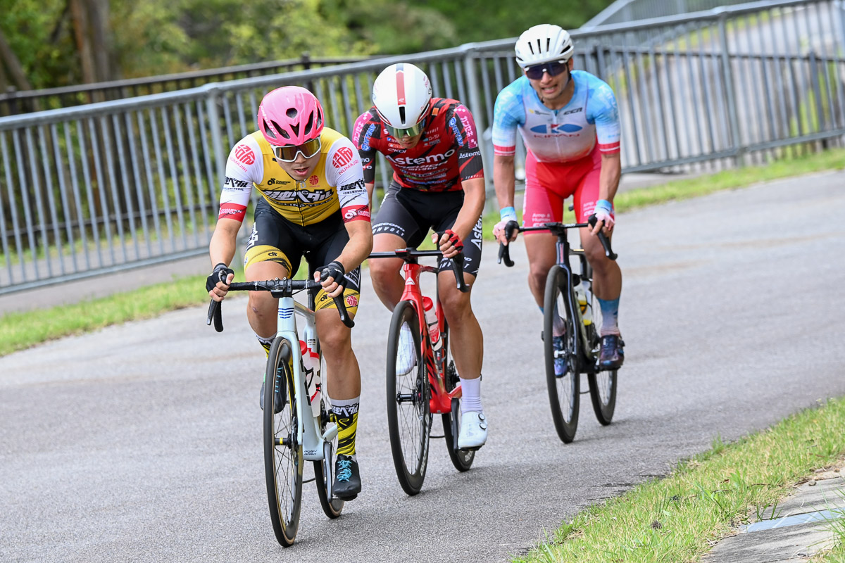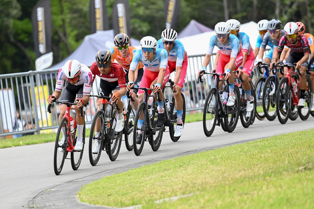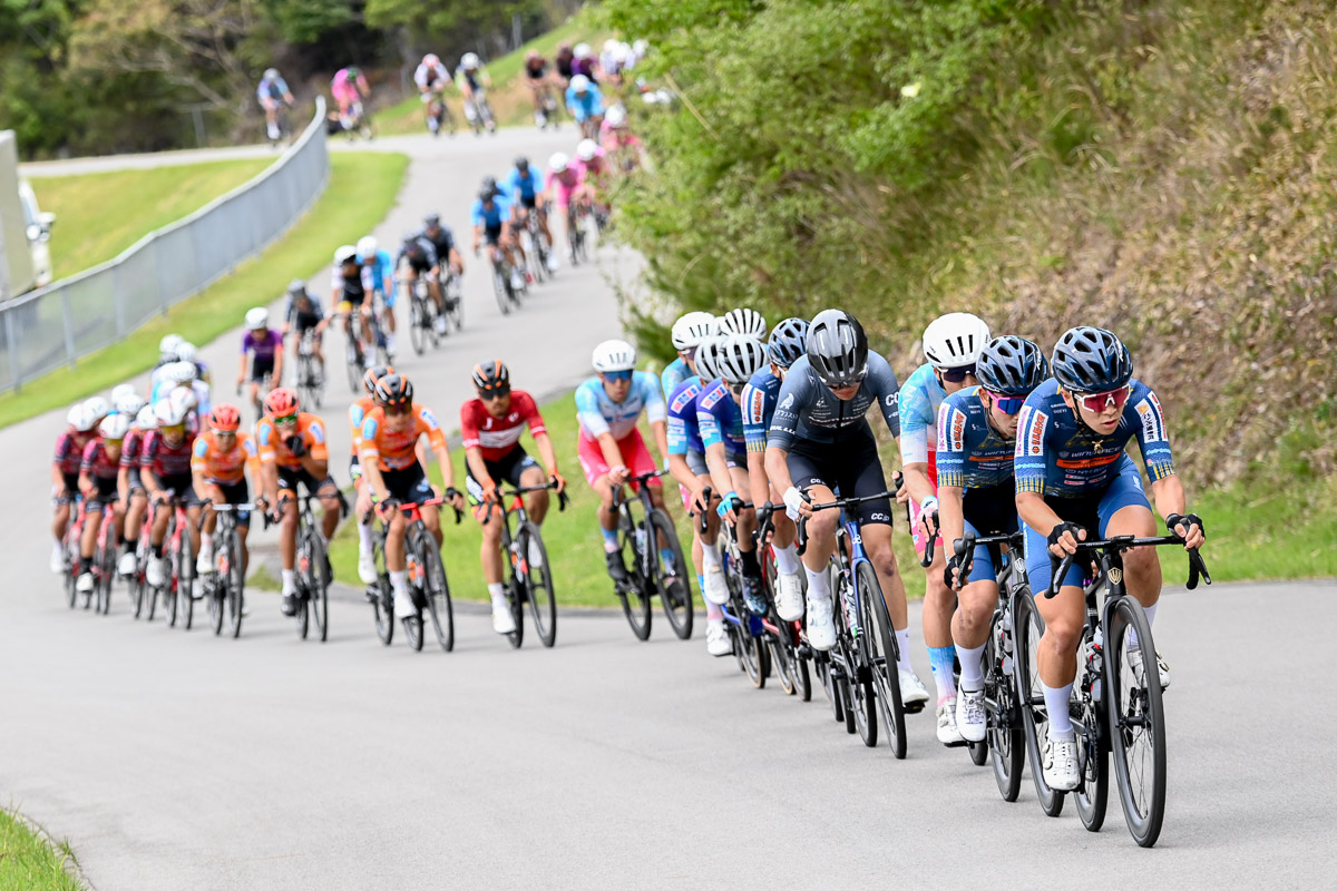 後続のメイン集団はスパークルおおいたレーシングチームが中心となってコントロール。先頭集団にメンバーを送り込めなかったシマノレーシングや群馬マンモスレーシング、アヴニールサイクリング山梨なども協力し、1分30秒前後の差を維持して周回する。