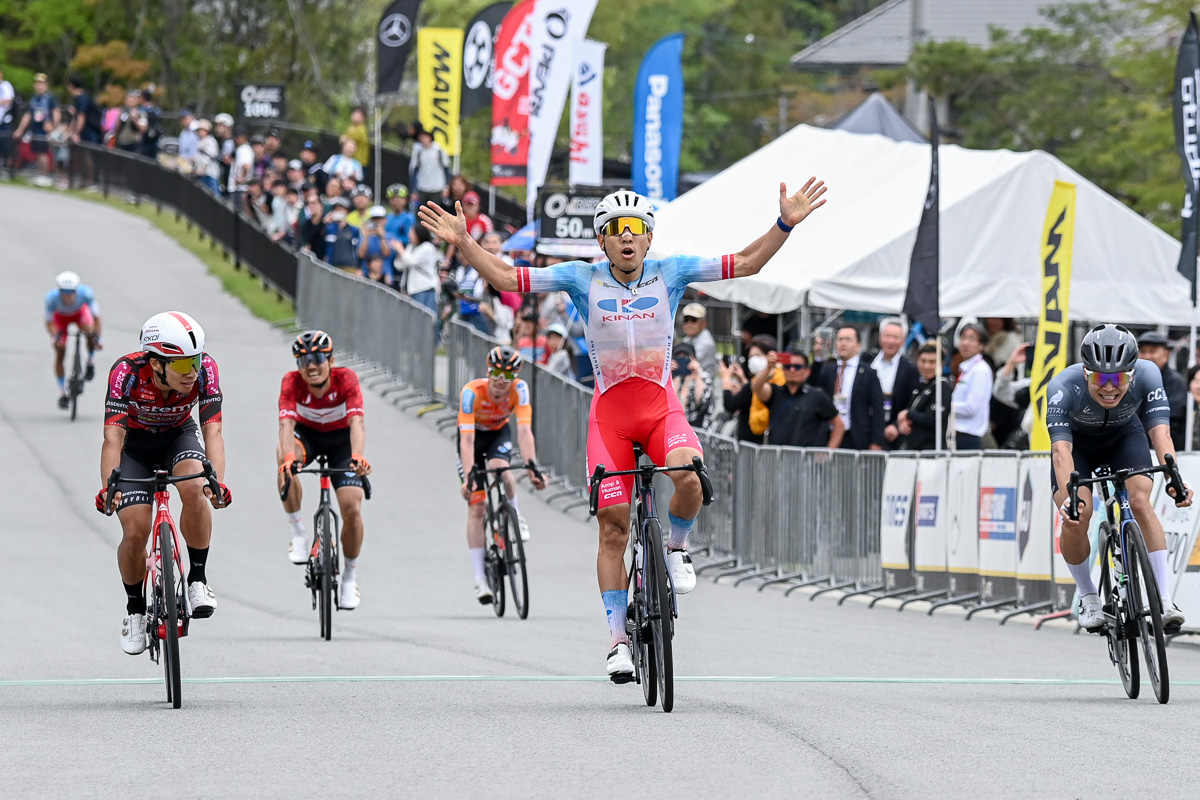 4月19日、Jプロツアー第4戦「西日本ロードクラシック」が、兵庫県立播磨中央公園で開催された。レースはスプリント勝負を制した草場啓吾(キナンレーシングチーム)が今季2勝目を挙げ、プロリーダージャージを奪回した。
