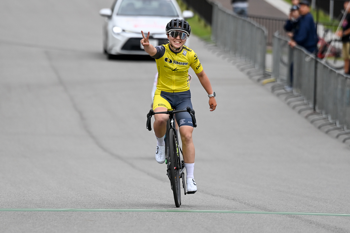 残り100m、ホームストレートに草場啓吾(キナンレーシングチーム)、岡篤志(Astemo宇都宮ブリッツェン)、金子宗平(群馬グリフィンレーシングチーム)ら3名が先頭争いをして姿を現す。ほぼ横一線のままフィニッシュラインを超え、ガッツポーズを繰り出したのは草場。開幕戦以来となるJプロツアー2勝目、2週間前のJクリテリウムツアーでの優勝を含めると今シーズン早くも3勝目を挙げた。