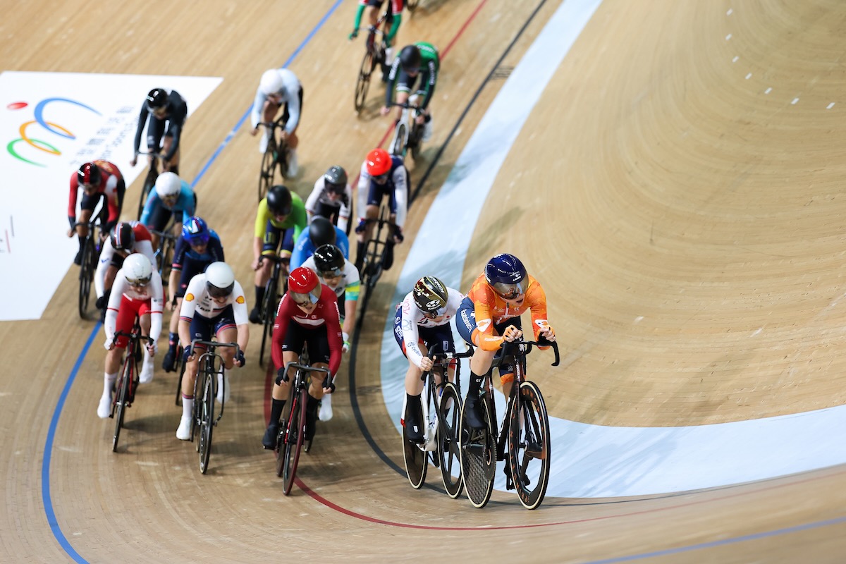 スクラッチ、テンポレース、エリミネーション、そしてポイントレースと1日で4種目をこなし、合計ポイントで争われる女子オムニアム。内野は世界トップクラスの強豪勢を相手に第1種目のスクラッチを7位で終えたものの、続くテンポレースでは集団追い抜きに成功して1位通過。さらにエリミネーションでも1位通過して暫定順位を1位まで押し上げた。