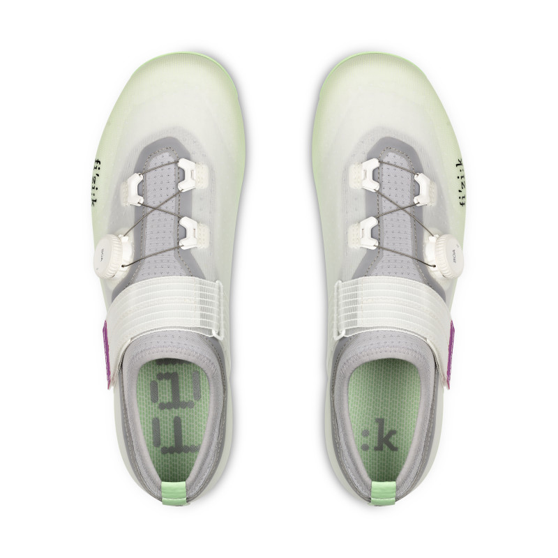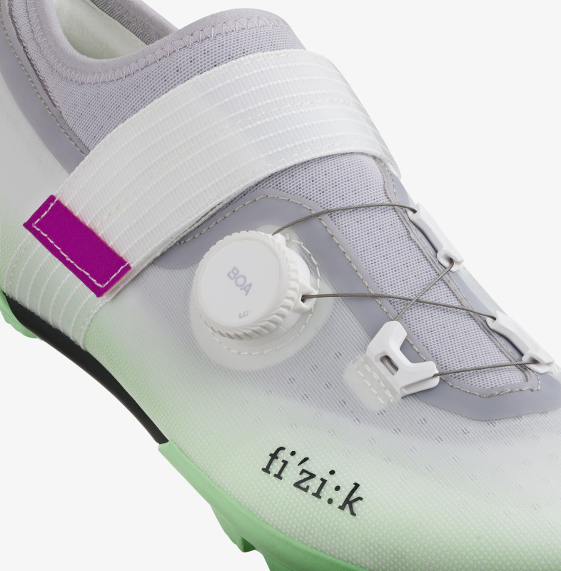 ペダリング効率に直結するアウトソールは、フィジークのラインアップの中でも最高となる剛性指数10/10を示すフルカーボンソールを継続採用。更に、細やかな調整が可能なBOA Li2ダイヤルに加え、甲側にフィジーク独自のベルクロテクノロジーであるPOWERSTRAPを配置するデュアルクロージャ―システムを搭載するのも第1世代同様だ。