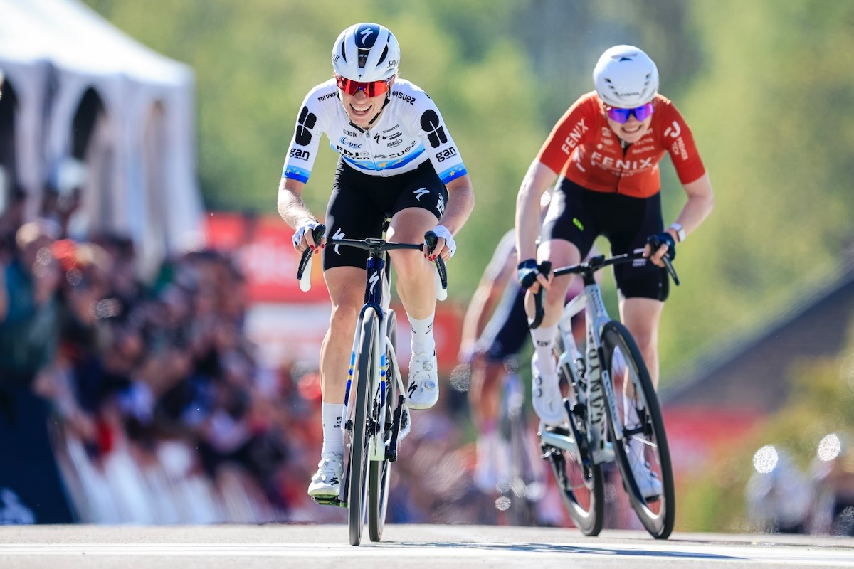 13%の勾配でも淡々とシッティングで踏み続けるヨーロッパ王者のペースに、カタジナ・ニエウィアドマ(ポーランド、キャニオン・スラム・ゾンダクリプト)らは徐々に引き離されていく。そしてフィニッシュ手前の最大勾配26%でもスピードが落ちることのなかったフォレリングが、そのまま勝利すると思われた。しかし背後から驚異的なスピードでピーテルセが迫り、勾配が緩くなる残り50mを過ぎ、ようやくフォレリングが後ろを振り返った。