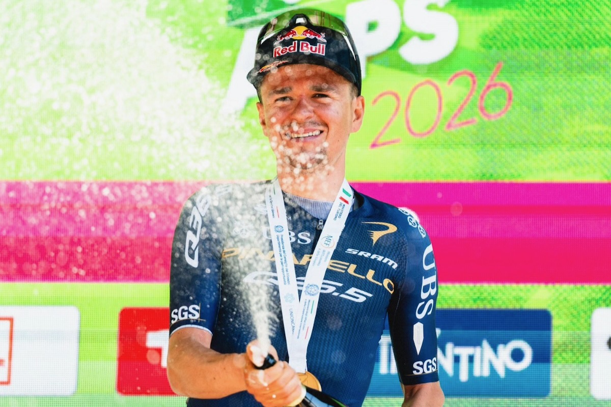総合首位のジュリオ・ペリツァーリ(イタリア、レッドブル・ボーラ・ハンスグローエ) photo:Tour of the Alps 4月22日に行われたツアー・オブ・ジ・アルプス(UCI2.Pro)第3ステージは、コース前半に1級山岳を越えるレイアウト。その後は下りと平坦路を経て2級山岳を登り、カテゴリーのつかない2つの丘を越えたのち、下りと平坦路を経てフィニッシュするコースだ。