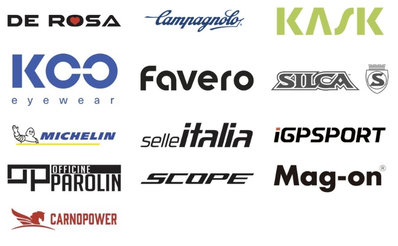 DE ROSA・Campagnolo・KASK・KOO・Favero・SILCA・MICHELIN・selle italia・iGPSPORT・OFFICINE PAROLIN・SCOPE・Mag-on・CARNOPOWER
