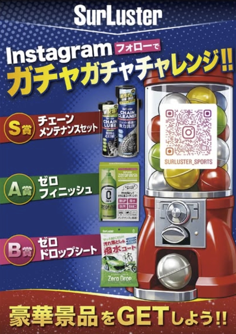 シュアラスターが今週末の4月25日(土)~26日(日)に開催されるサイクルモード2026でSNSキャンペーンを実施する。インスタグラムのフォローで参加できるガチャガチャチャレンジが開催され、チェーンメンテナンスセットやゼロフィニッシュなどが当たる。以下、公式SNSより紹介しよう。