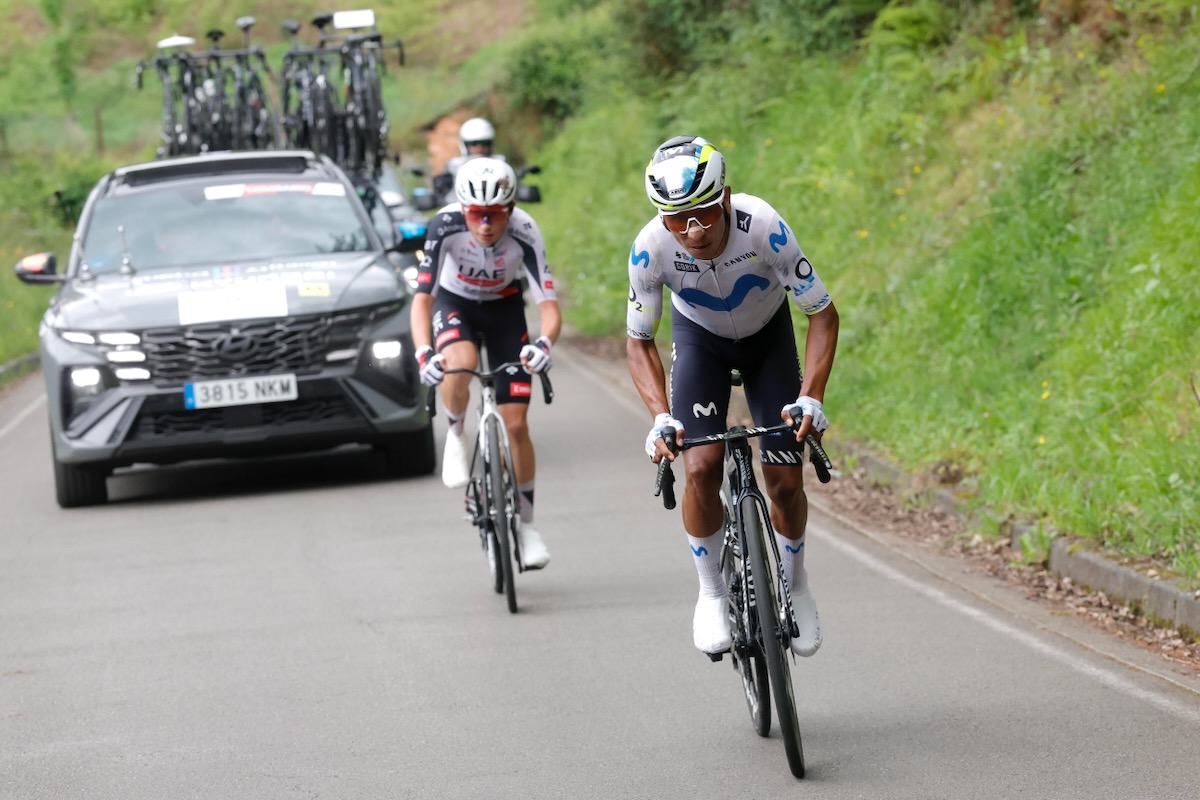 最後から3つ目の1級山岳アルト・デ・ラ・コジャディエージャ(距離8.7km/平均6.5%)に入り、メイン集団を飛び出したのは、今年3月に今季限りでの引退を発表したナイロ・キンタナ(コロンビア、モビスター)と、プロ1年目の19歳で、注目クライマーであるアドリア・ペリカス(スペイン、UAEチームエミレーツXRG)。その後、キンタナのチームメイトであるディエゴ・ペスカドール(コロンビア、モビスター)ら3名が合流したものの、続く2級山岳で再びキンタナとペリカスが抜け出す。そして最後の3級山岳に入り、キンタナがペリカスを引き離し、単独先頭に立った。