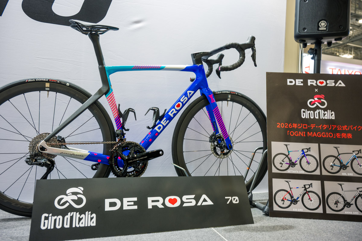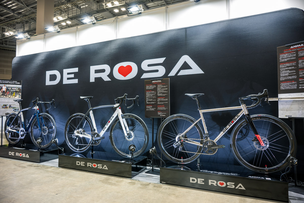 そんな大規模ブースの奥には様々な自転車ブランドが軒を連ねるゾーンに。イタリアンブランドの雄、デローザは新型IDOLのニューカラーやジロ・デ・イタリア公式デザインのSETTANTAを展示。久々にフルモデルチェンジを果たしたセッレイタリアの新型SLRや限定コレクションの実物も並ぶ。