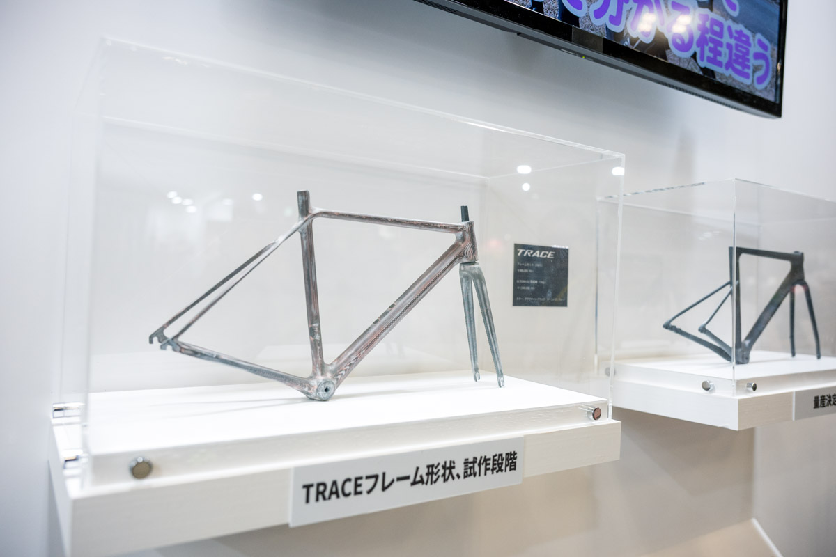 パナソニックサイクルテックは玄人の琴線をビシバシ刺激するPOS(パナソニックオーダーシステム)の展示に注力。美しいペイントが施されたサンプルや実際に使用されるスプレー、そしてラグやエンドといったパーツが並べられ、ベテラン勢をしっかりキャッチ。