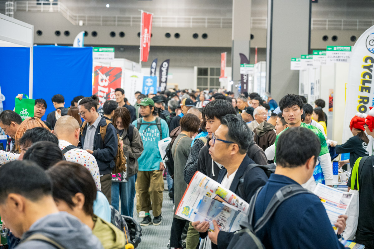 自転車旅フェアは大盛況。多くのブースに多くの参加者が詰めかけた