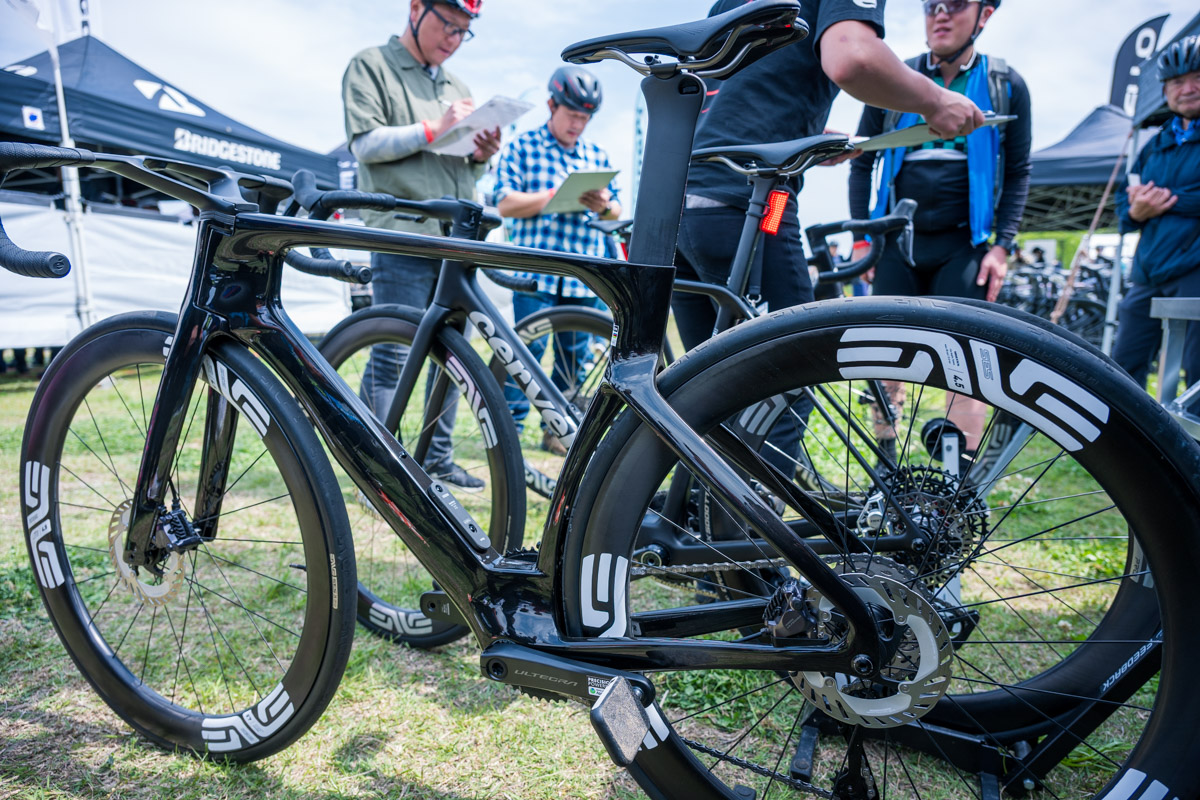 今回は初回ということもあり、海の森公園に並んだブースはすこし少な目といった印象。とはいえ、ピナレロを筆頭にサーヴェロやオルベア、ルック、ビアンキ、ブリヂストンやキャニオンといった有名どころが並び、シマノやパナレーサーもブースを展開し、どこも満員御礼といった混雑ぶり。