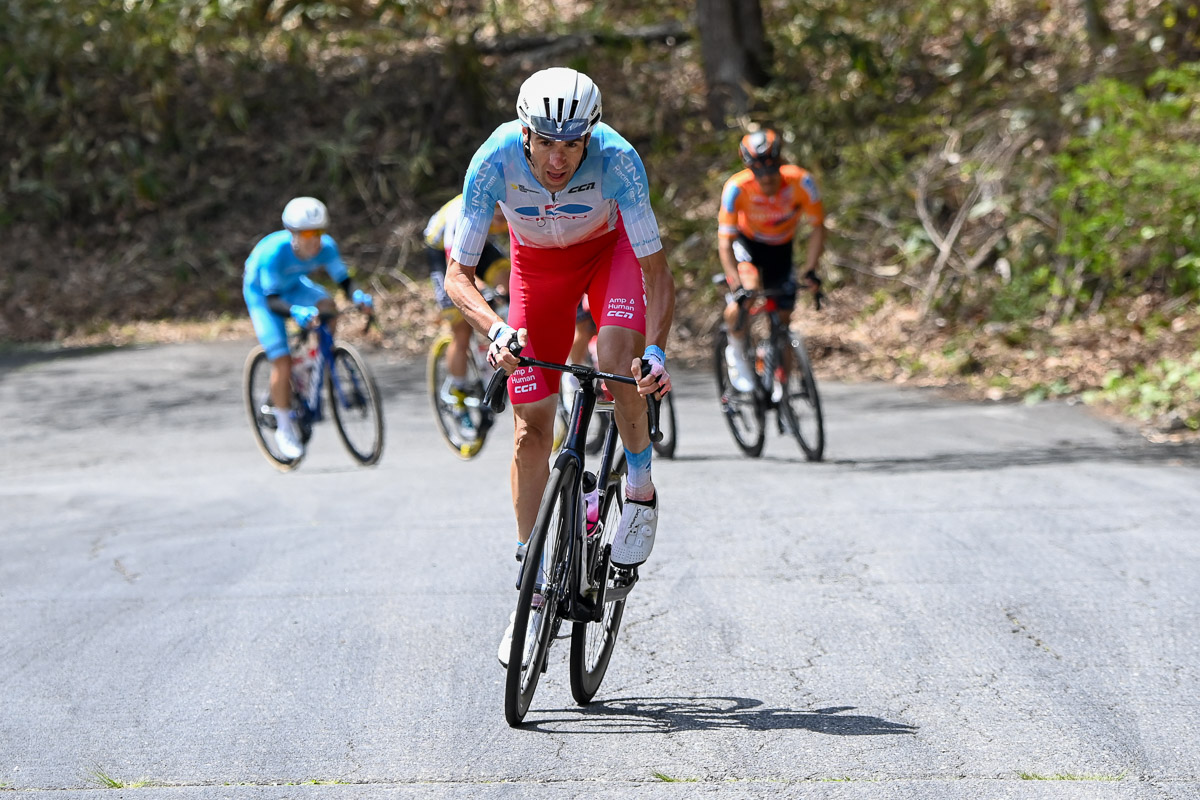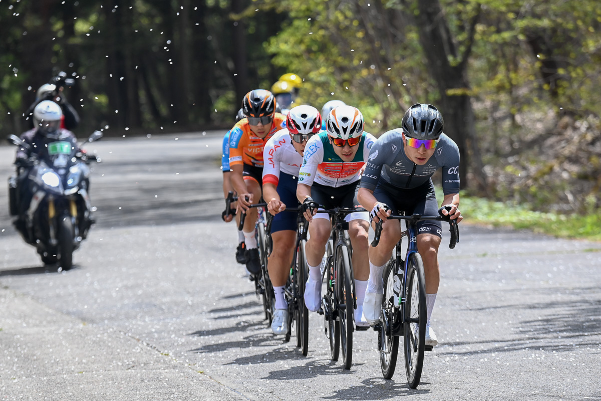 先頭集団には、最初の先行集団にも入った金子、島崎をはじめ、プロリーダージャージを着る草場啓吾(キナンレーシングチーム)、ランキング2位の孫崎大樹(ヴィクトワール広島)、ランキング3位の岡篤志(Astemo宇都宮ブリッツェン)らを含み、ランキングトップのチームを中心に複数名を送り込んだ。