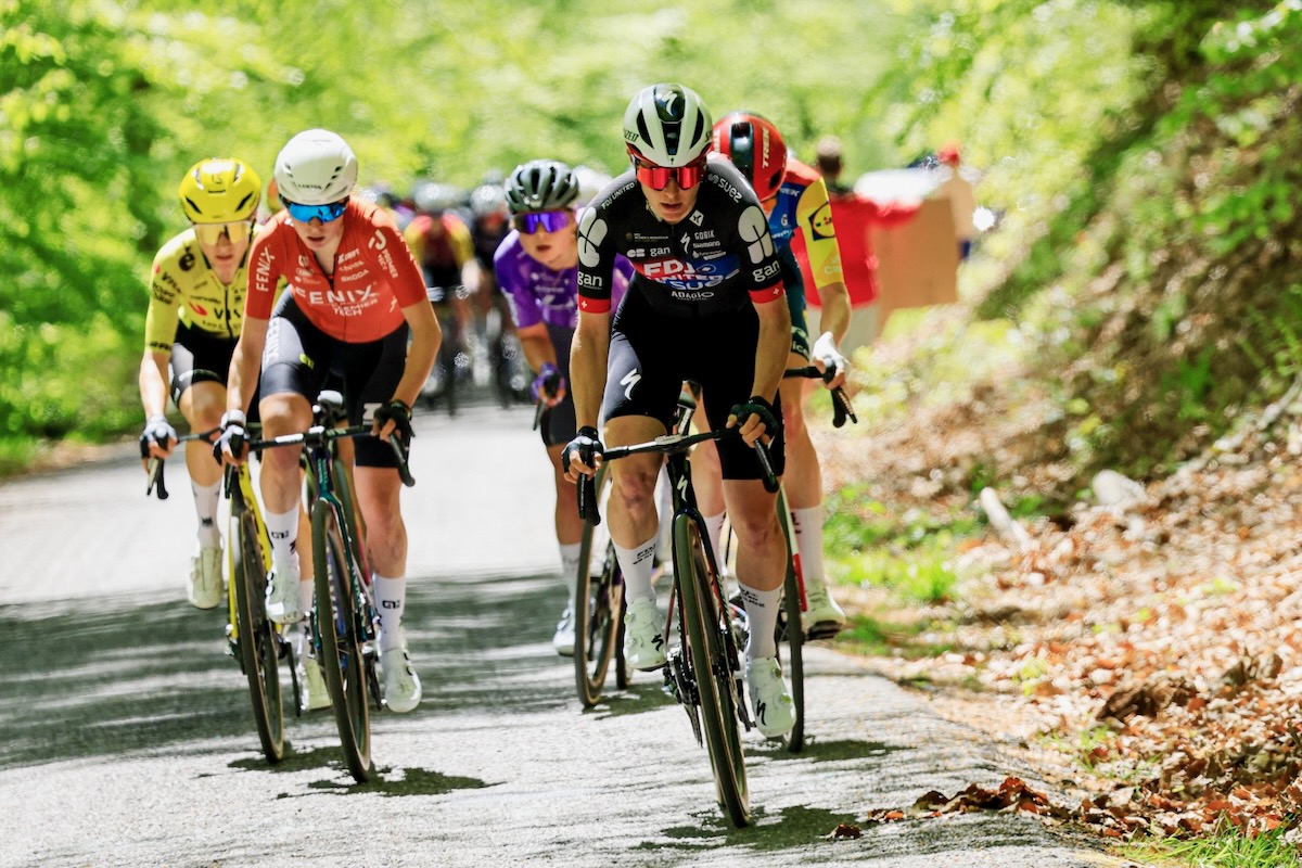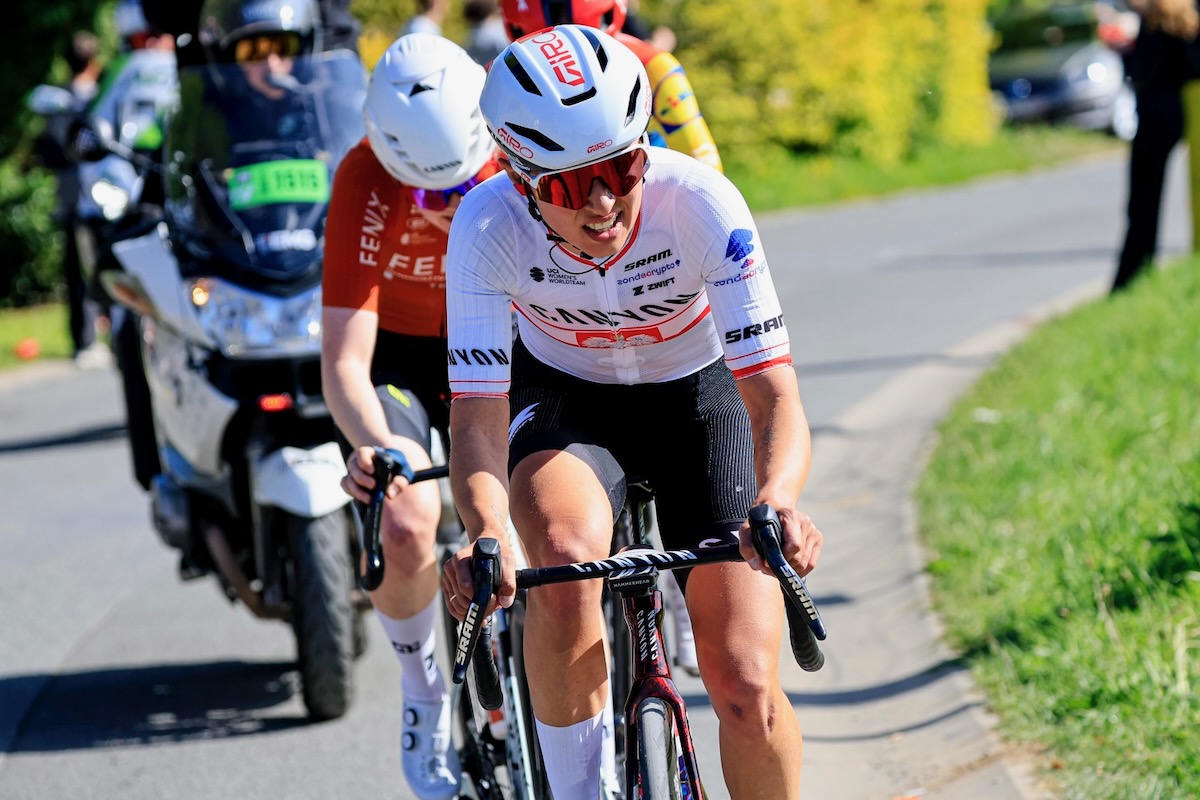 そして集団はひと塊のまま、最大勾配15%のコート・ド・ラ・ルドゥット(距離1.6km/平均9.4%)に突入する。エヴィータ・ムジック(FDJユナイテッド・スエズ)からベルテへのフランス人アシストリレーによって集団は縦長となり、シャベイのリードアウトから頂上手前600mでデミ・フォレリング(オランダ、FDJユナイテッド・スエズ)が先頭に立つ。その背後にはカタジナ・ニエウィアドマ(ポーランド、キャニオン・スラム・ゾンダクリプト)、そしてプック・ピーテルセ(オランダ、フェニックス・プレミアテック)ら有力勢がついた。