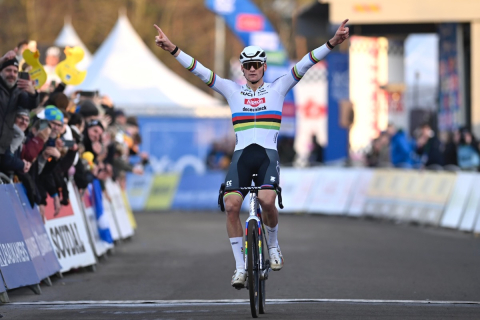 竹之内悠(チームユーラシア)がガッツポーズでゴールしたその僅か3秒後に、小坂光(宇都宮ブリッツェン)が悔しい表情でゴールした。標高850mの朝霧高原で行なわれたシクロクロス全日本選手権。JCF主催のエリート男女ならびにジュニアのレースの模様をお伝えします。